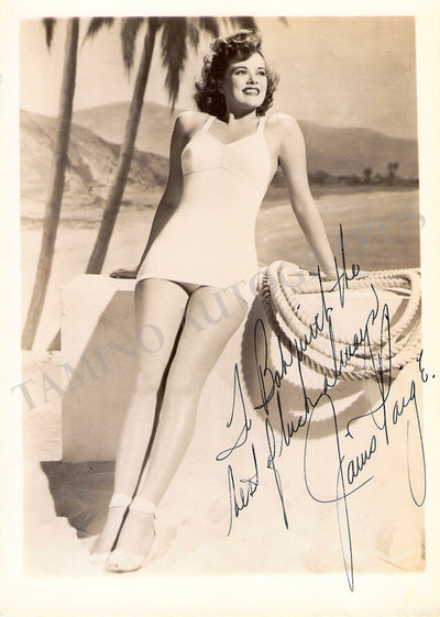 Nice glamour sepia photograph inscribed and signed by her with a short sentiment. Size is 8 x 10 inches, in excellent condition.