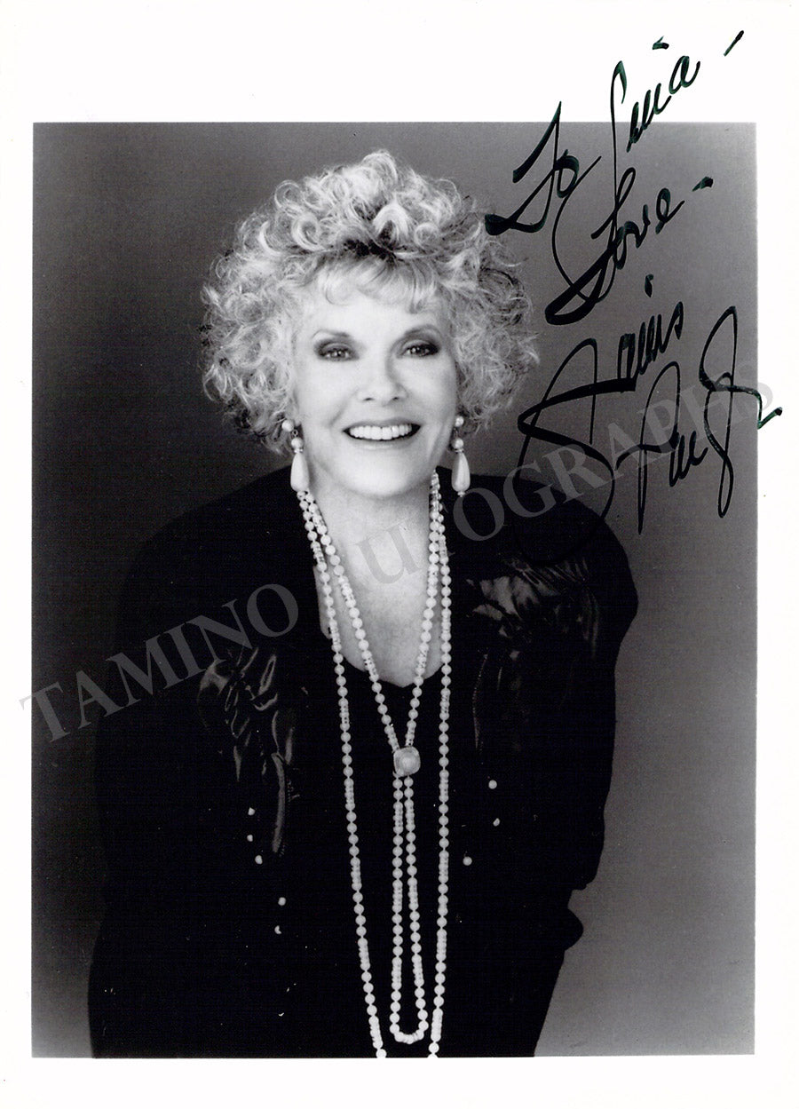 Black-and-white photograph signed and inscribed by her with a short sentiment. Size is 4.8 x 6.75 inches, in excellent condition.