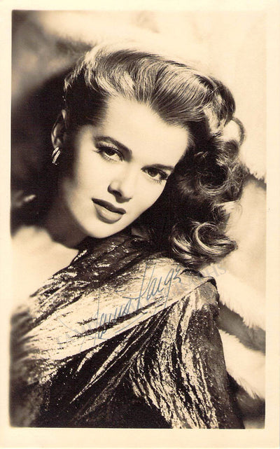 Beautiful sepia photo postcard signed by her on the front and verso too. Size is 3.4 x 5.4 inches, in excellent condition.