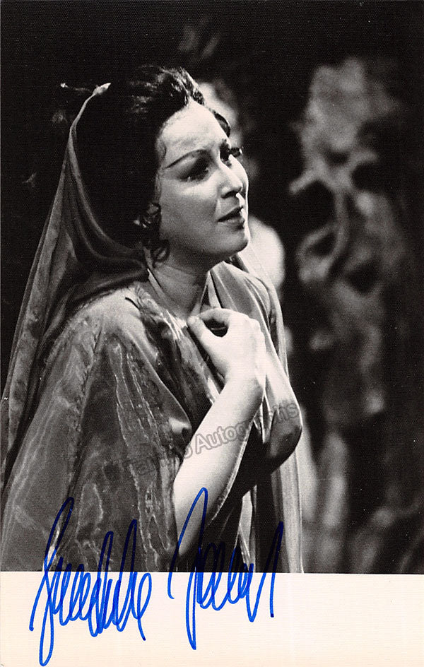 Signed publicity photograph, shown as herself. Photo by Siegfried Lauterwasser, DG records. Size is 4 x 5.75 inches, in excellent condition.
