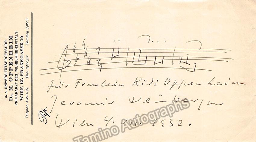 Weinberger, Jaromir - Autograph Music Quote 1932
