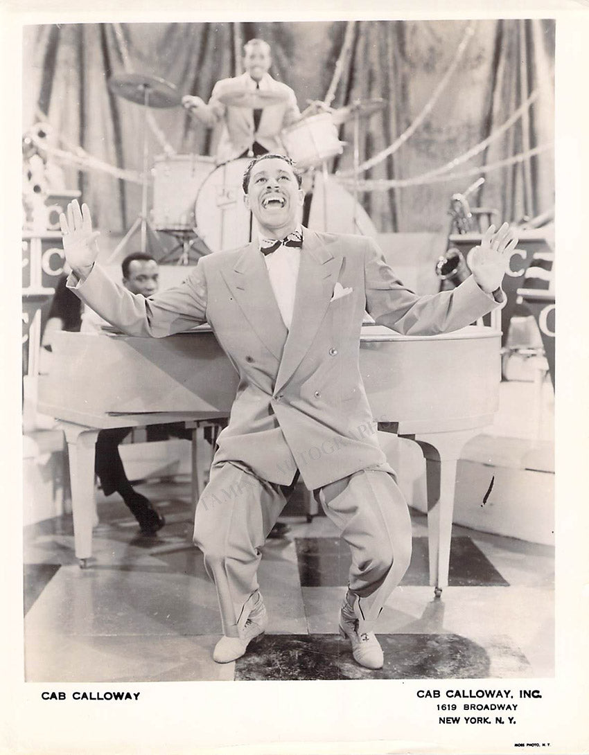 Lot of 19 unsigned photographs of jazz musicians and bandleaders, including Al Hibbler, Betty Huston, Cab Calloway, Jack Constanza, Janet Brace, Johnny Long, Ken Griffin, Milton Burnhart, Nancy Reed, Ray Kellogg, Ray Wetzel, Roy Eldridge, Skitch Henderson, Vaughn Monroe, Ziggy Elmer, and others. Each one's size is 8 x 10 inches approximately, all in excellent condition.