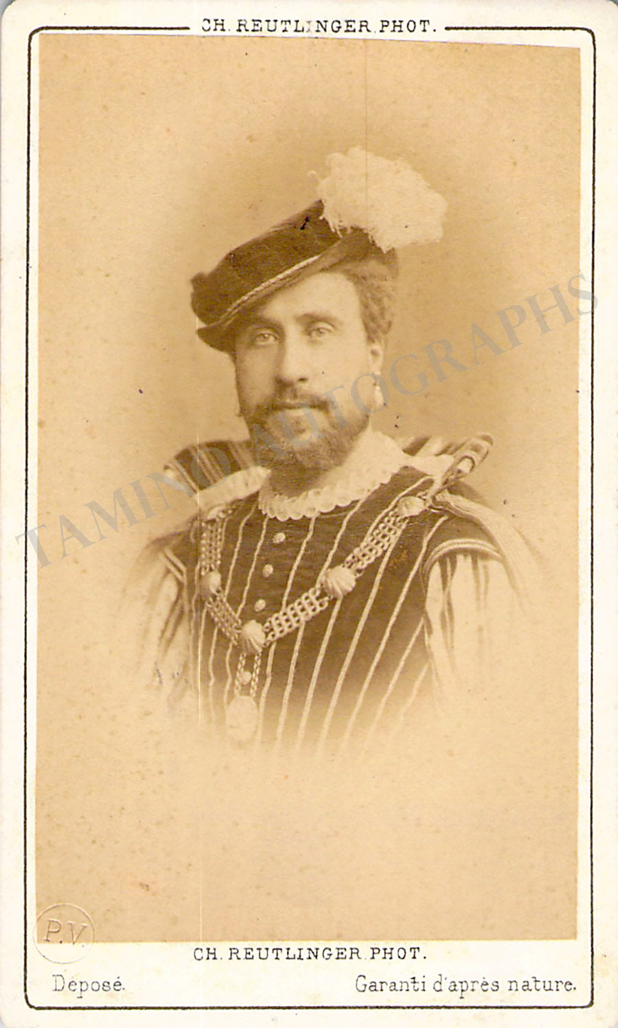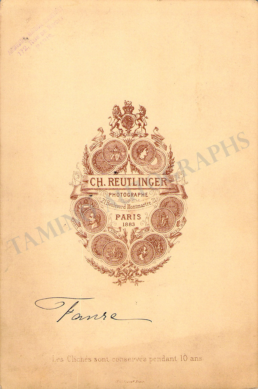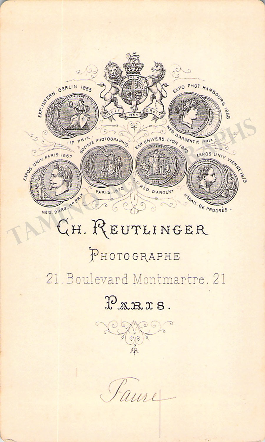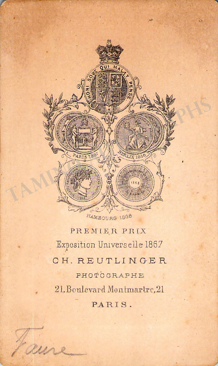 ALSO INCLUDED are his visiting card handwritten by him (4 x 2.5 inches), two unsigned CDV photos of him, and one unsigned cabinet photo of him by Charles Reutlinger (4.25 x 6.4 inches).