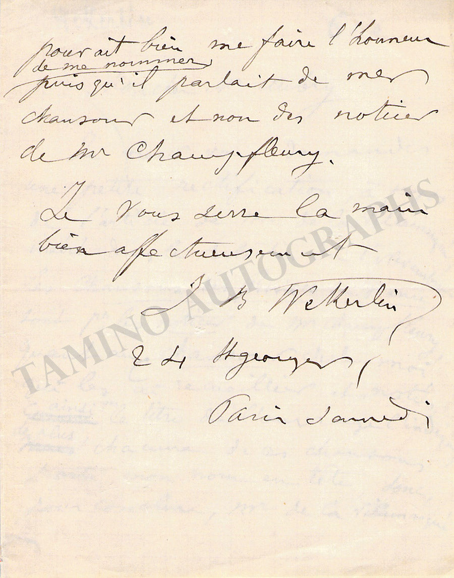 Weckerlin, Jean-Baptiste - Autograph Letter Signed Weckerlin, Jean-Baptiste - Autograph Letter Signed Weckerlin, Jean-Baptiste - Autograph Letter Signed