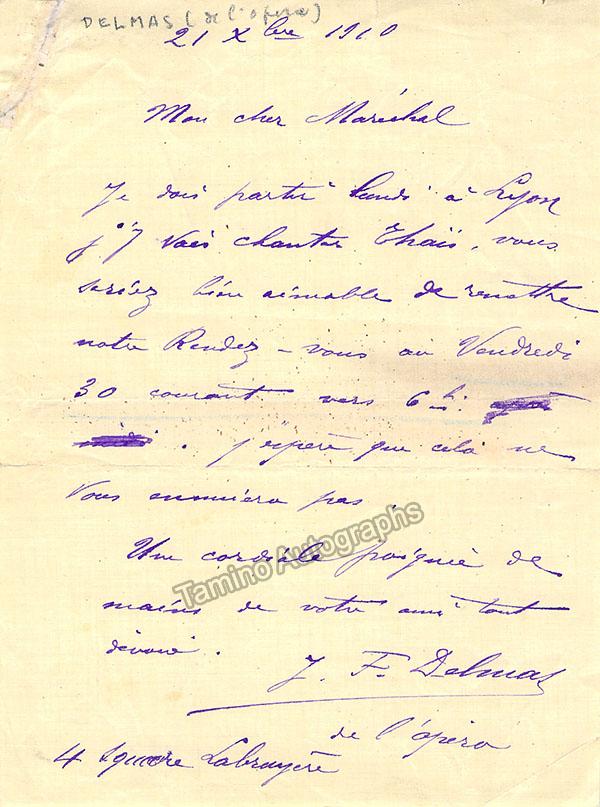 Jean Francois Delmas Autograph Letter Signed Authentic Item
