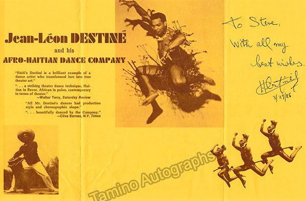 Jean-Leon Destine Autograph Signed Brochure 1986