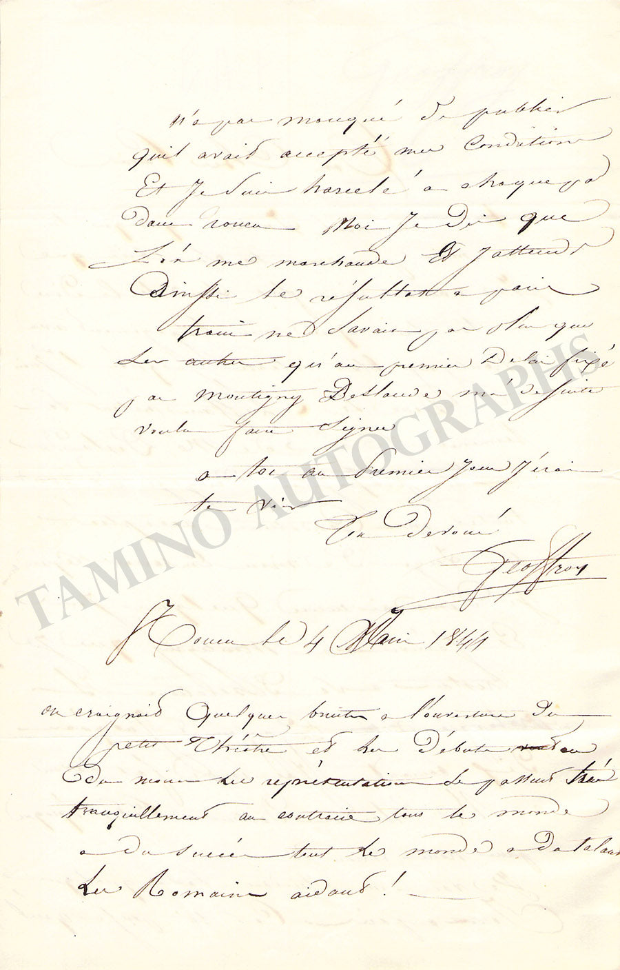 Geoffroy, Jean-Marie - Autograph Letter Signed 1844 Geoffroy, Jean-Marie - Autograph Letter Signed 1844