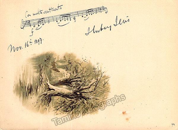 Autograph music quote signed by him, dated in 1897, with three bars from an unknown piece over an album page. Size is 8.25 x 6 inches, in excellent condition.