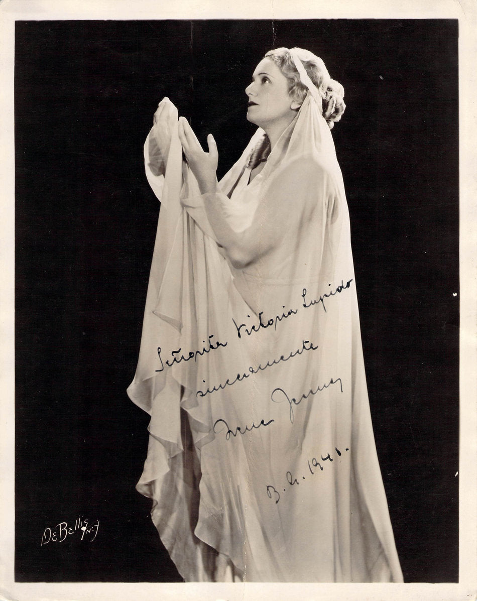 Signed photograph, shown in role, inscribed and dated in 19401. Photo by DeBellis, New York. Size is 8 x 10 inches, some creases and bends but in otherwise good condition.