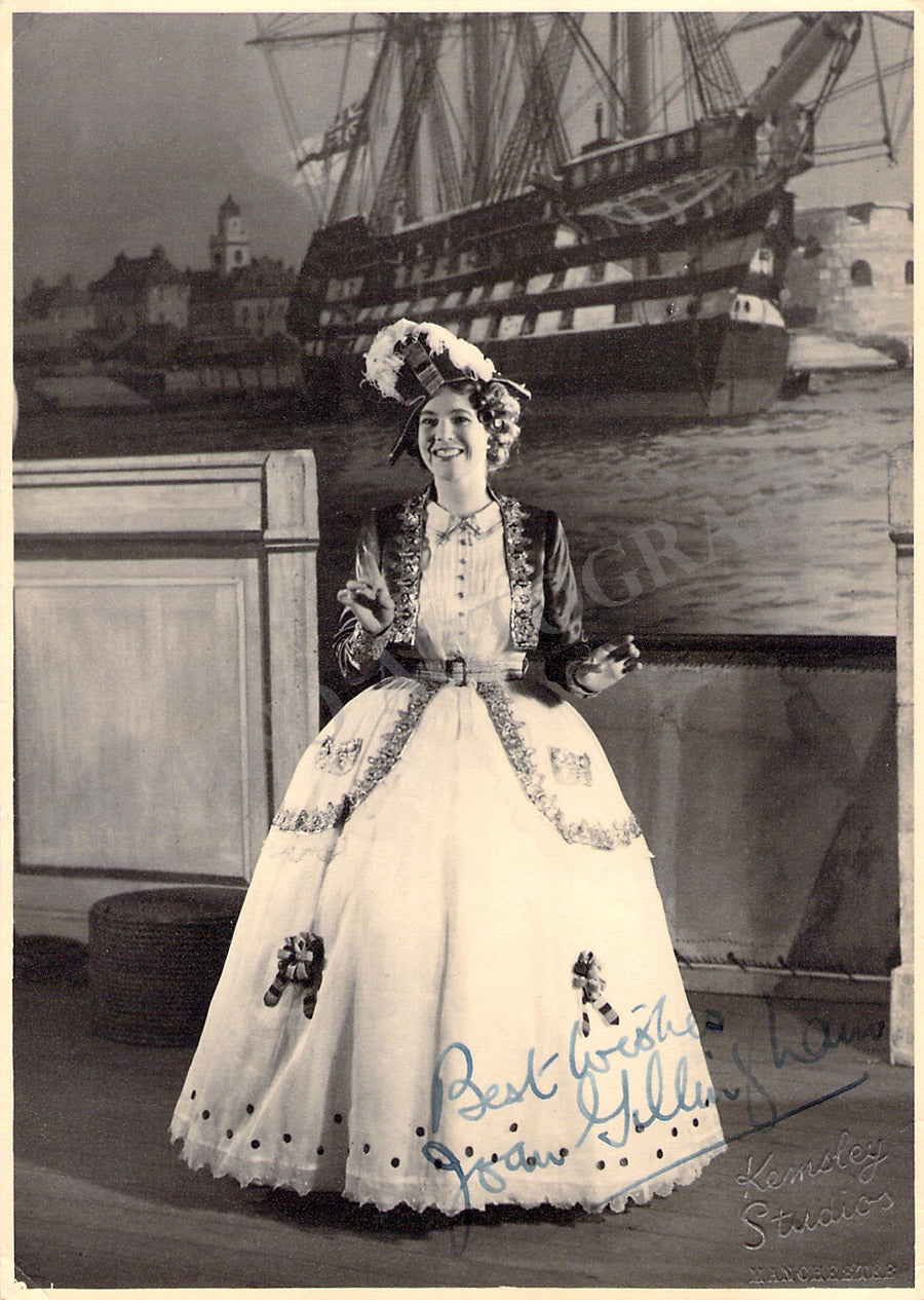 Fine black-and-white photograph signed by her with a short sentiment, shown in performance. Size is 4.4 x 6.1 inches, in excellent condition.