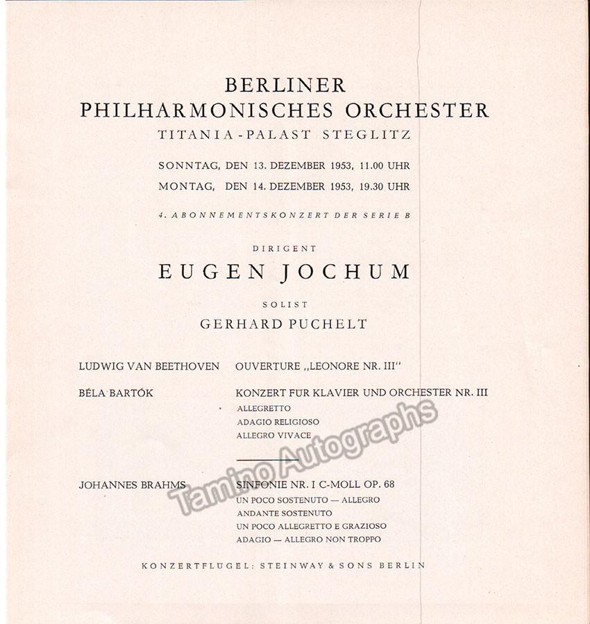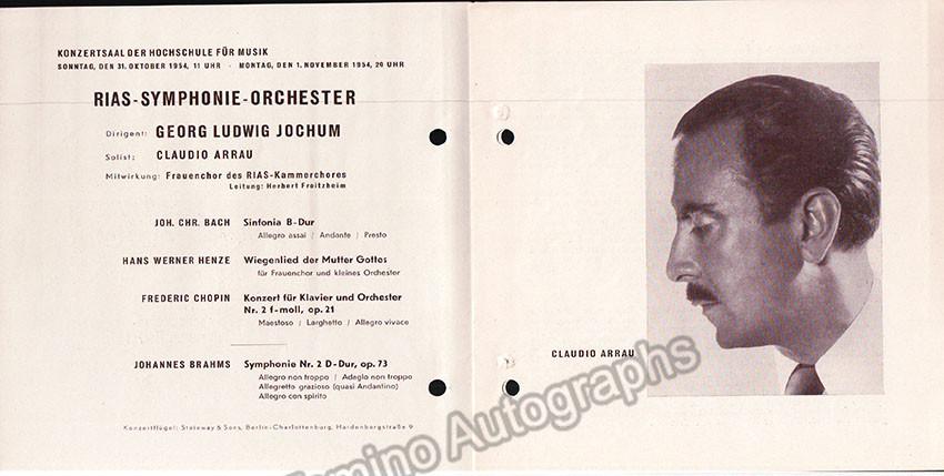 Lot of 8 unsigned programs, each with Eugen Jochum conducting different orchestras. All full programs with all pages and covers, in very good condition - one with Claudio Arrau as soloist. See scans.