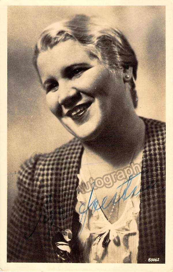 German soprano (1904-1996), signed photo postcard, shown as herself, also handwritten and signed on verso. Size is 3.5 x 5.5 inches