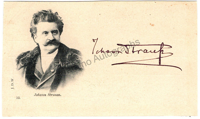 Fine photo postcard with a small portrait of the composer signed boldly by him.  Size is 5.4 x 3.2 inches, mounting traces on verso, in excellent condition.