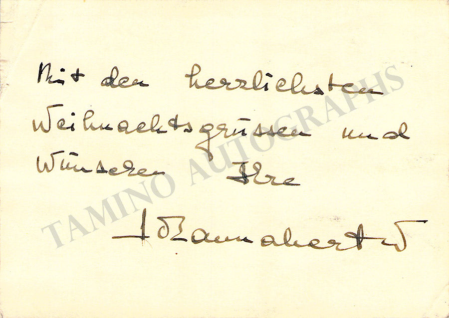 Nice card signed by her with a greeting in German. Size is 5.75 x 4.1 inches, in excellent condition.