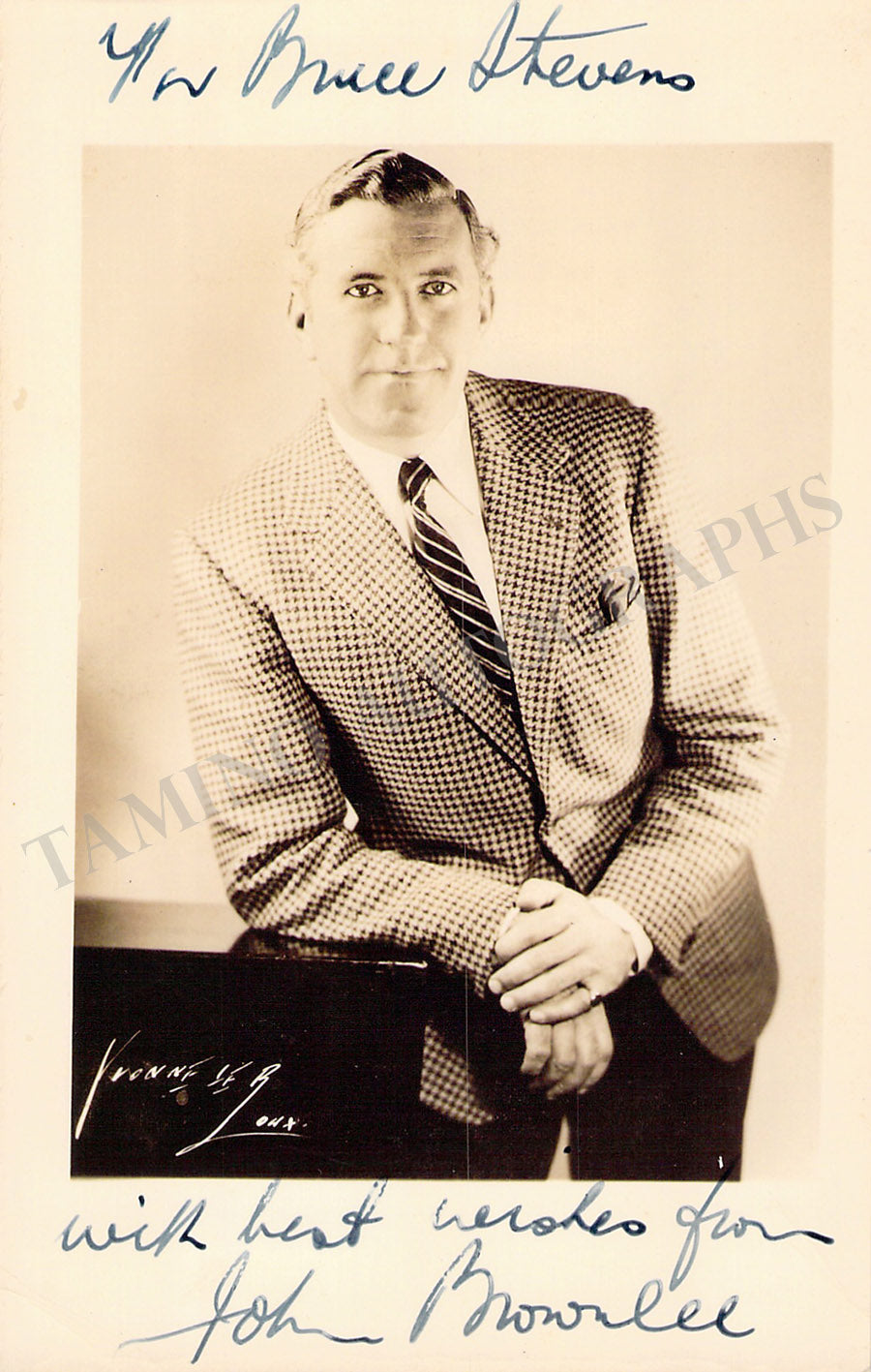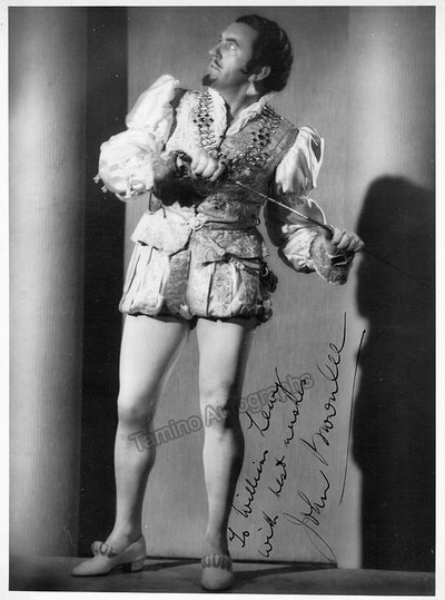 Fine large black-and-white photograph signed and inscribed by him, shown as Count Almaviva in Mozart's Le Nozze di Figaro; stamped on verso by The New York Times Photograph Studio. Size is 8 x 10 inches with bending on corners but otherwise in very good condition.