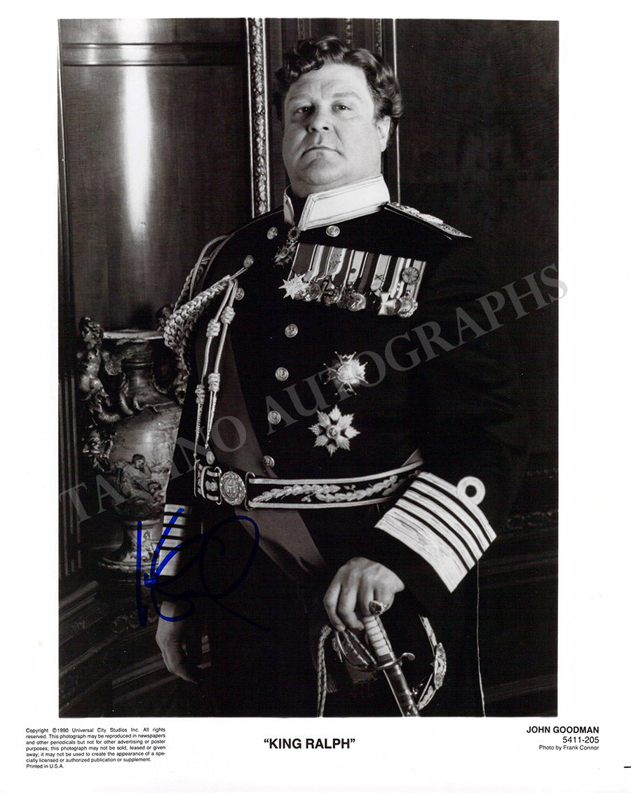 Nice black-and-white promo photograph signed by him, shown in the film "King Ralph" (1991). Size is 7.9 x 10 inches, in excellent condition.
