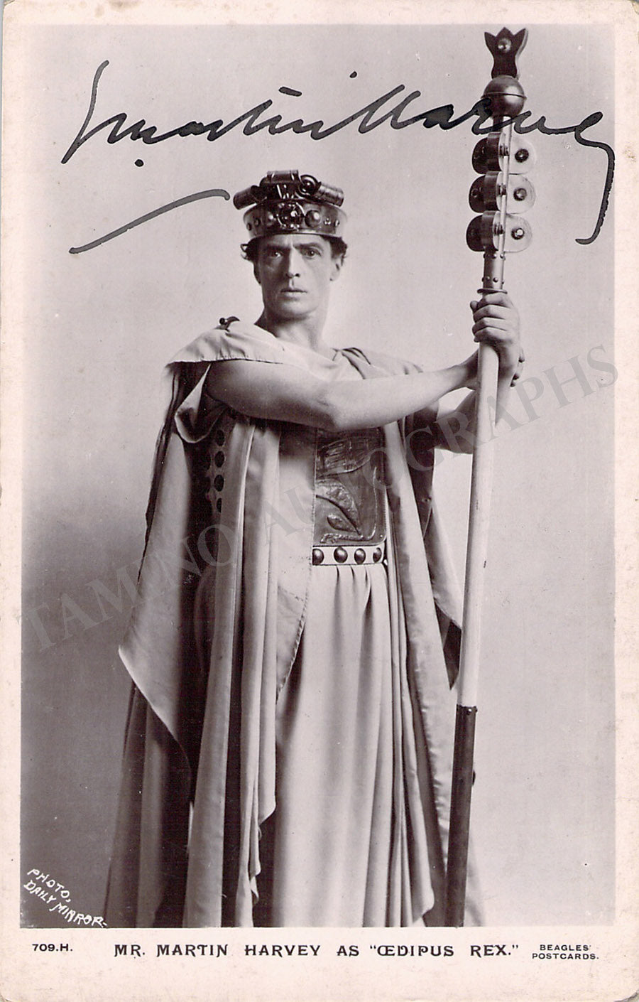 Beautiful black-and-white promo photo postcard signed by him, shown in "Oedipus Rex".  Size is 3.4 x 5.4 inches, in excellent condition.