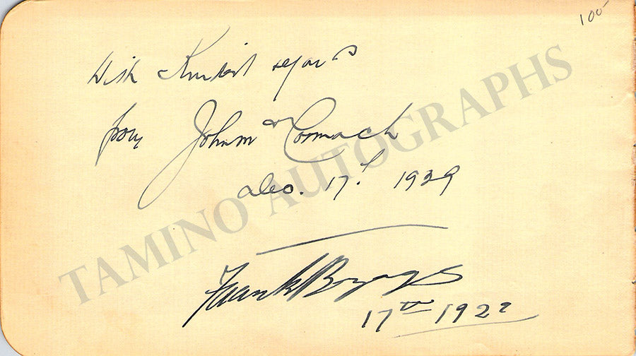 Album page signed by him with a short sentiment dated December 17, 1939. Size is 6.75 x 3.8 inches, in very good condition.