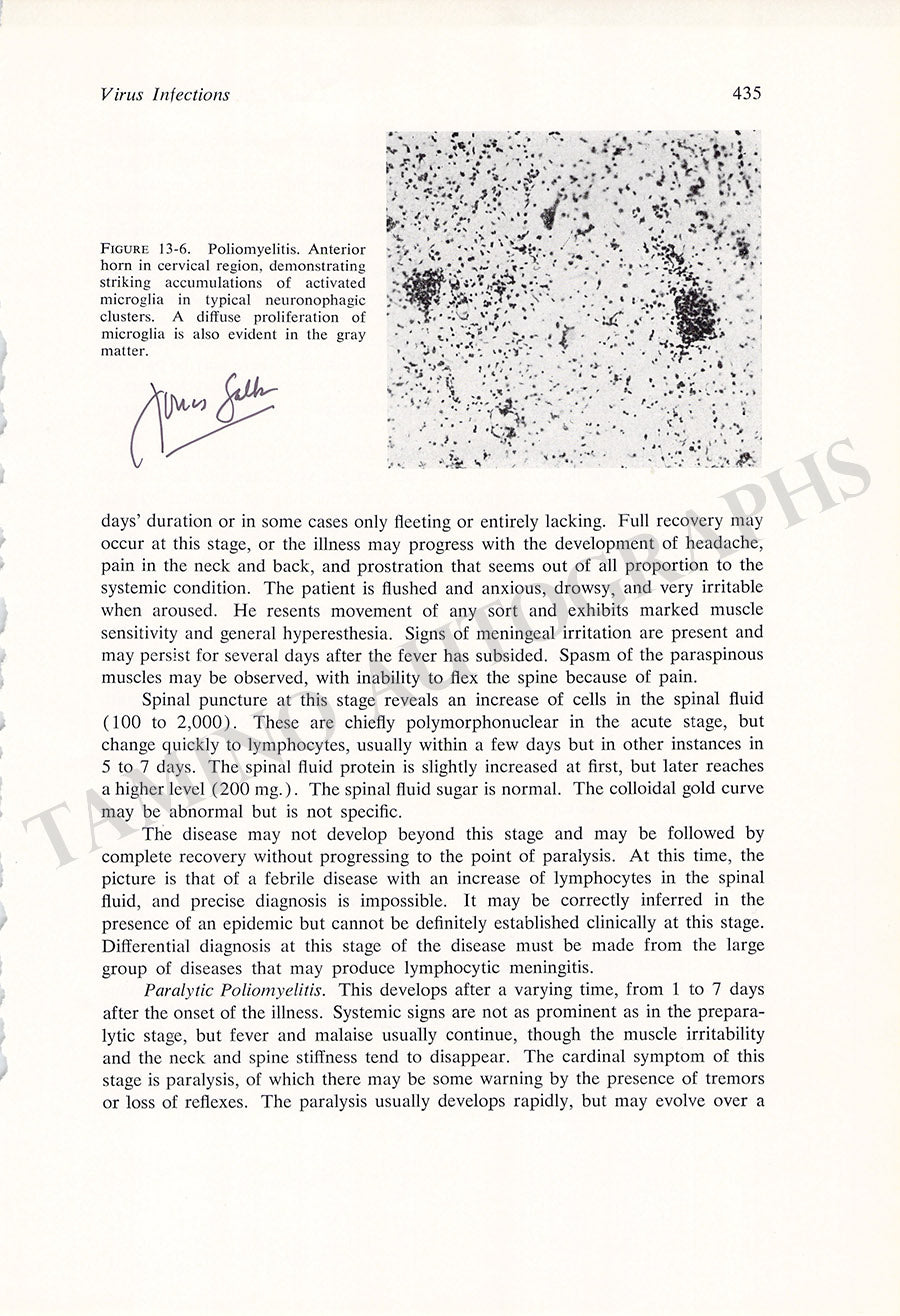 Card signed by him plus a page from a book about Viral Infections signed by him under the caption of the image. Card is 5 x 3 inches, page is 6.75 x 9.9 inches, irregularly left border, otherwise in excellent condition