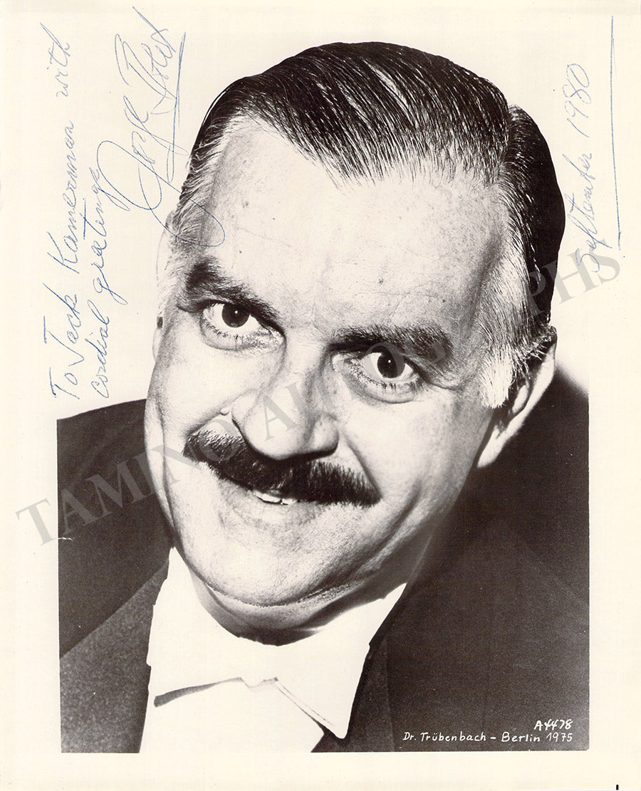 Black-and-white photograph signed and inscribed by him with a short sentiment dated September 1980. Size is 8 x 9.8 inches, in excellent condition.