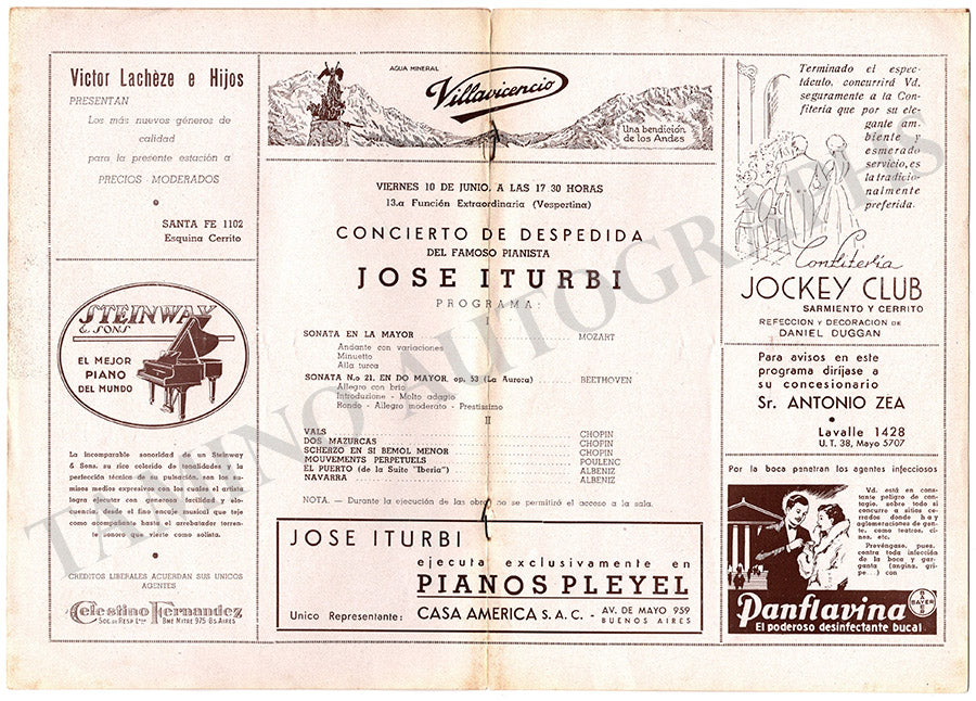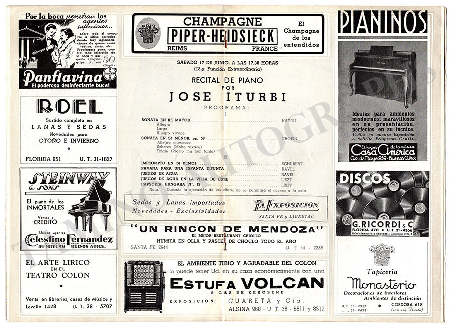 Iturbi, Jose - Set x 3 Concert Program Buenos Aires 1938-39