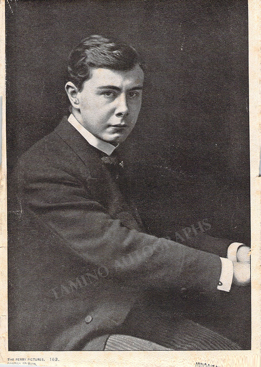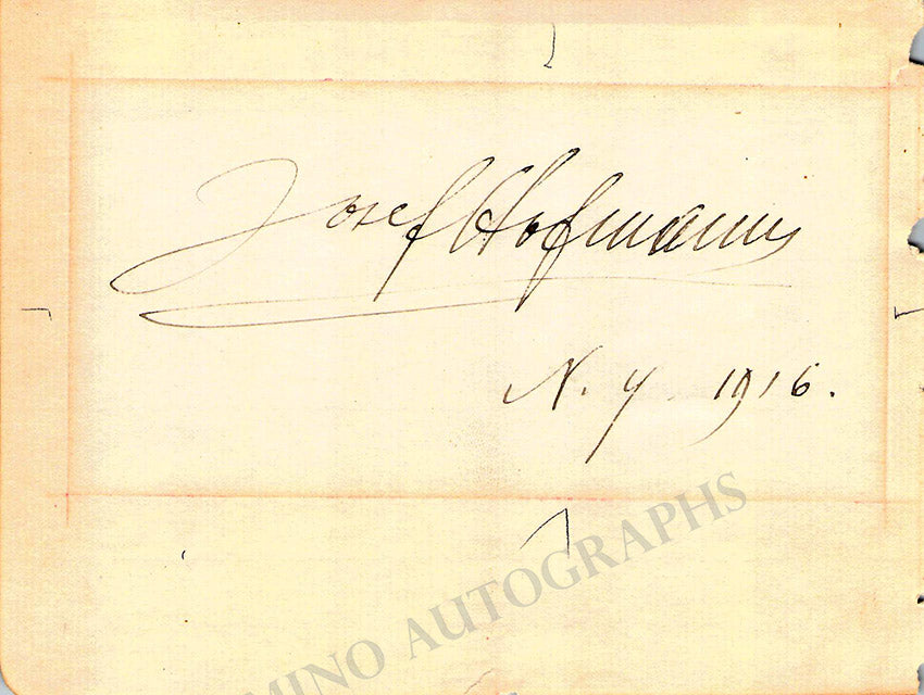 Nice card signed by him dated in New York, 1916, mounted on an album page. Total size is 6.3 x 4.8 inches, evident mat burn signs, in overall very good condition.