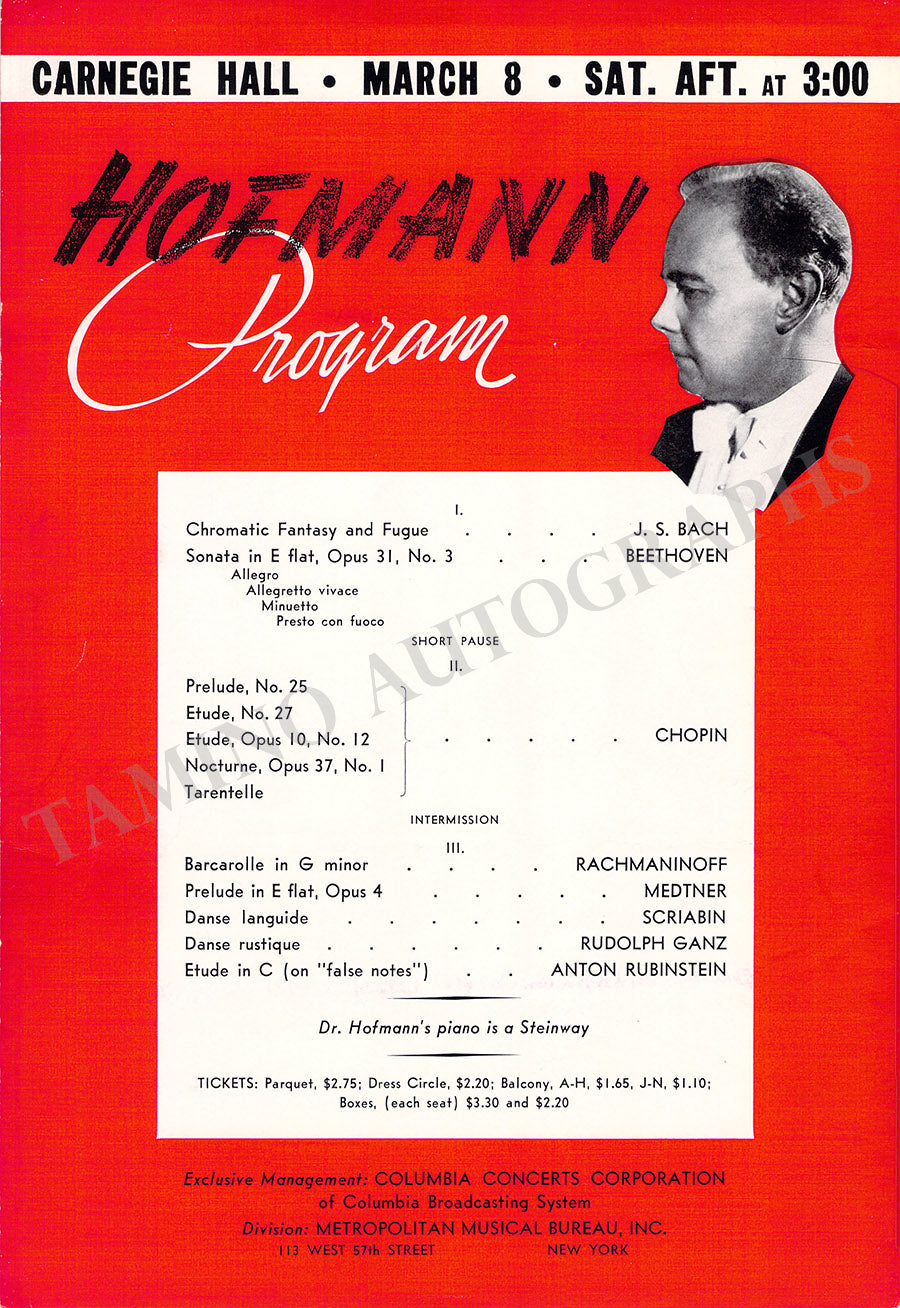 Hoffmann, Josef - Concert Playbill Carnegie Hall Hoffmann, Josef - Concert Playbill Carnegie Hall