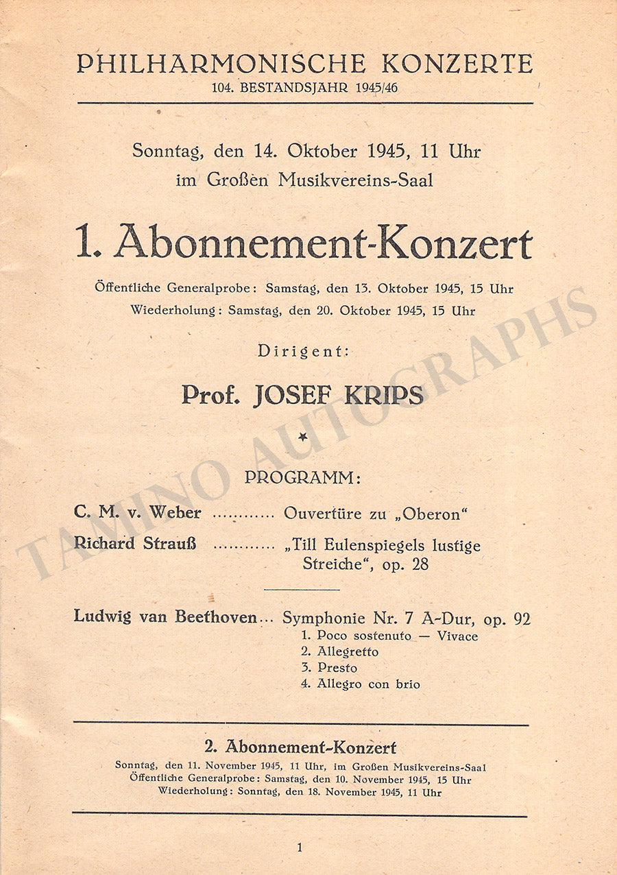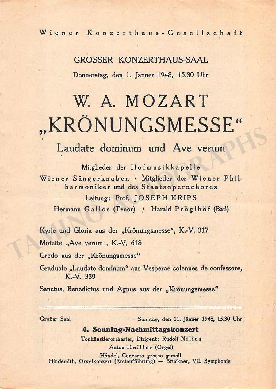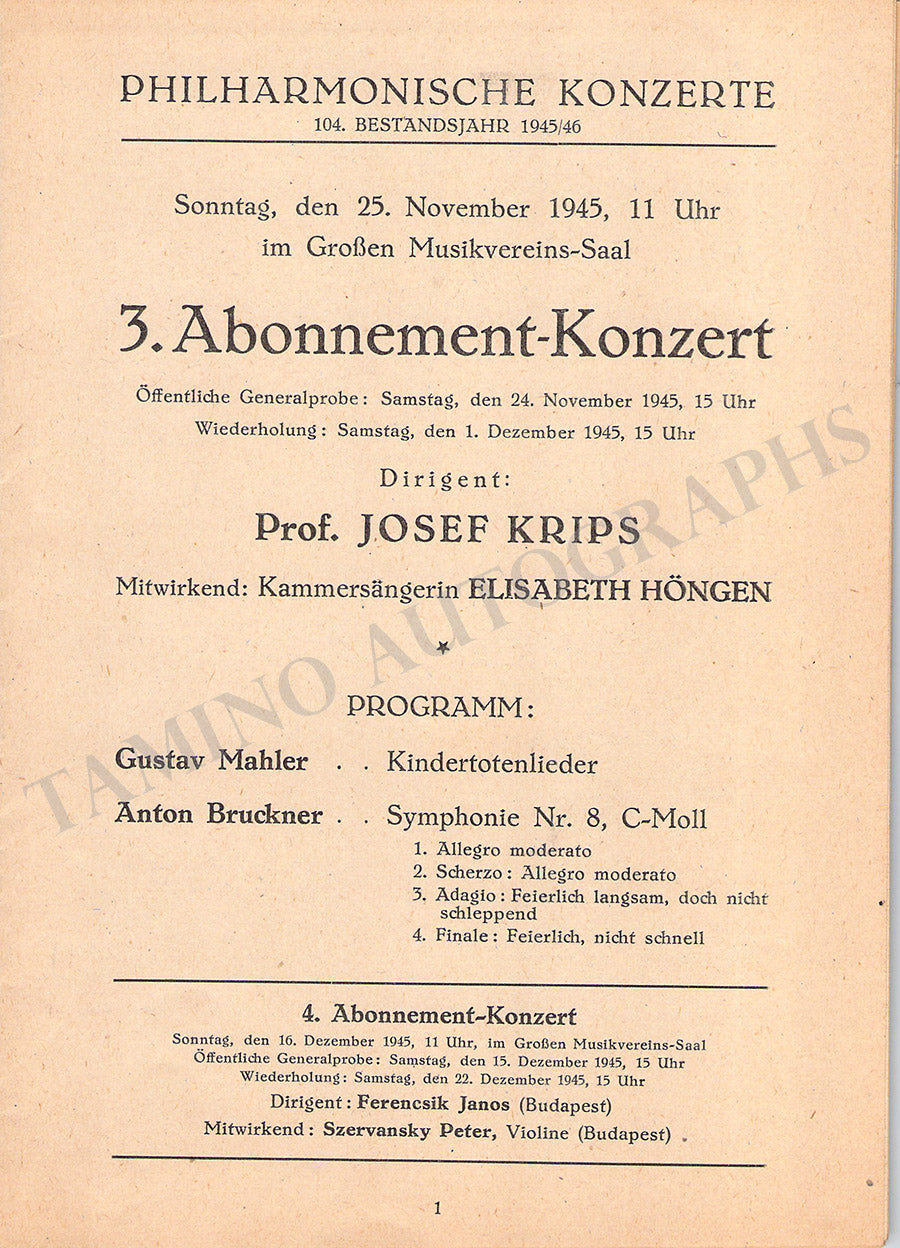 Krips, Josef - Set of 15 Concert Programs Vienna 1937-1966