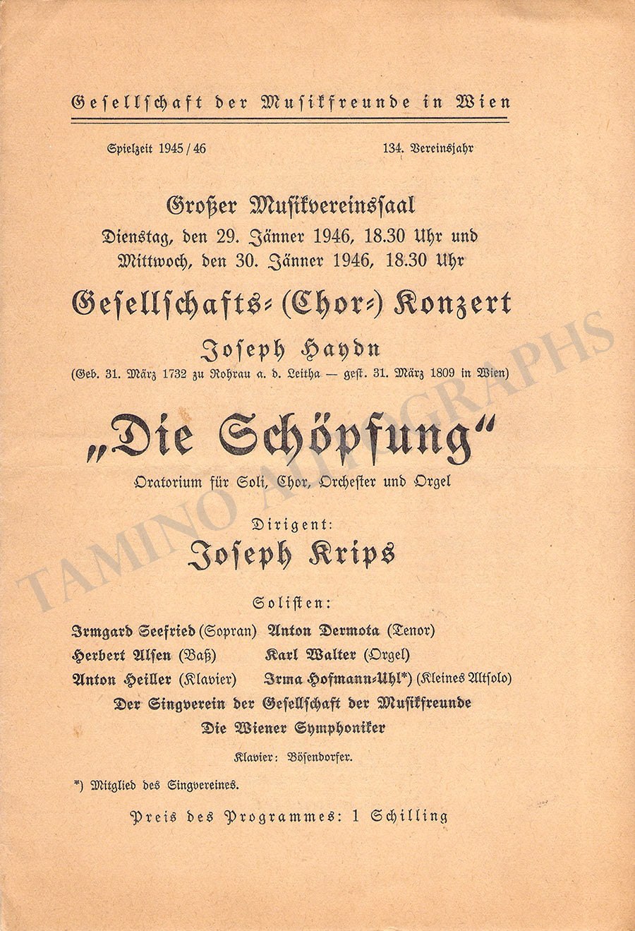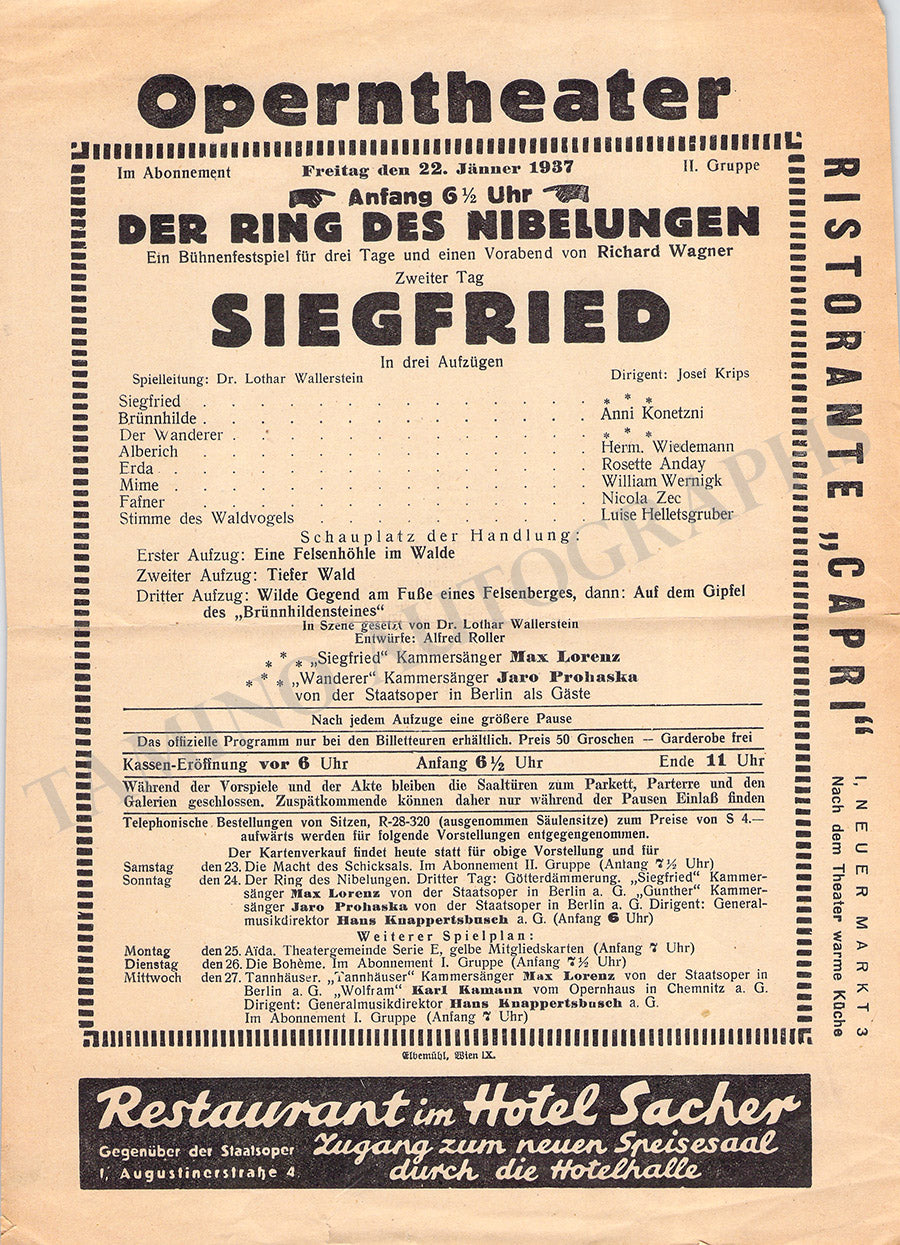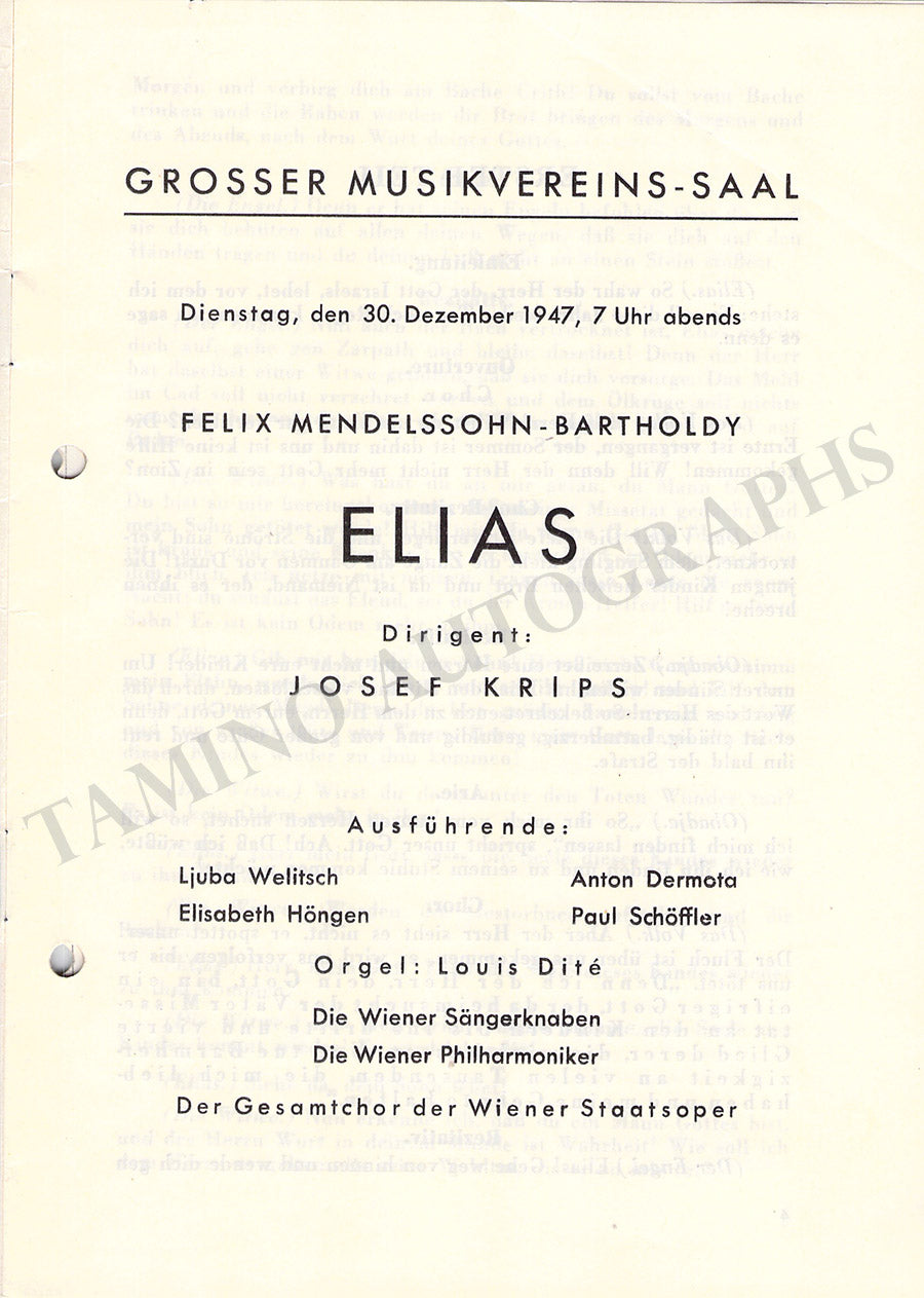 Krips, Josef - Set of 15 Concert Programs Vienna 1937-1966