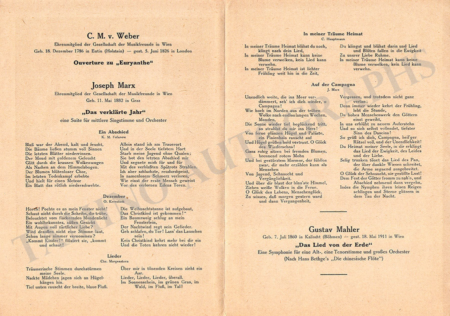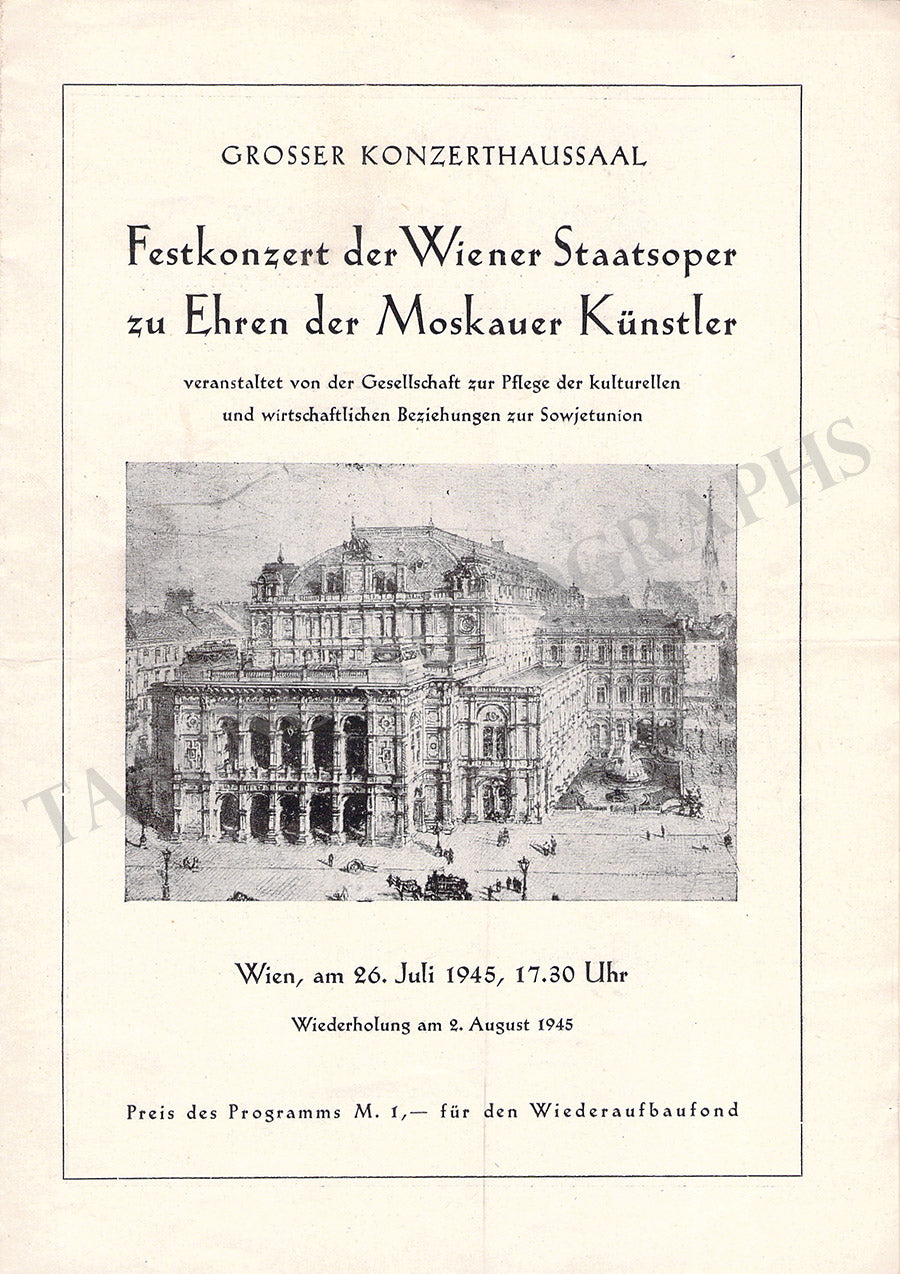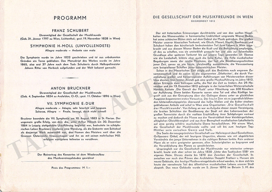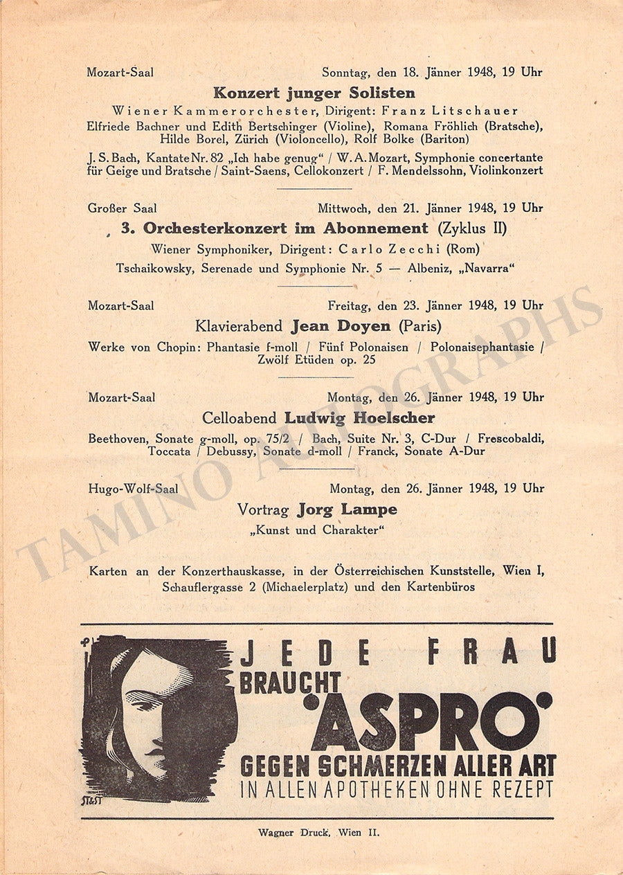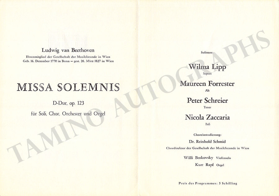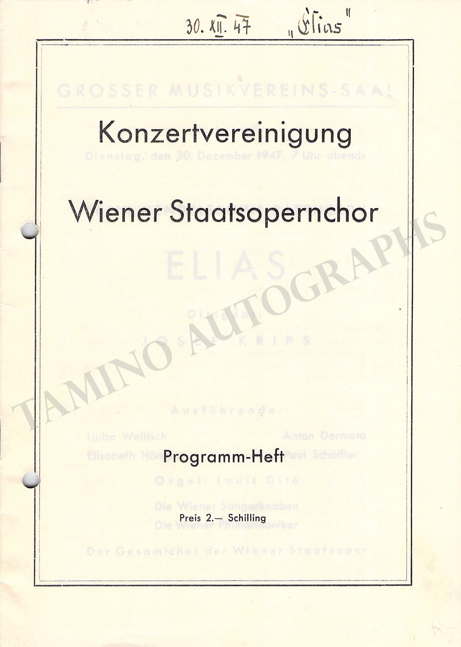 Fine set of 15 unsigned concert programs for performances conducted by the celebrated conductor in Vienna between 1937-1966. Most of the programs are 5.8 x 8.25 inches in size, full programs with all pages and covers, in very good condition or better.