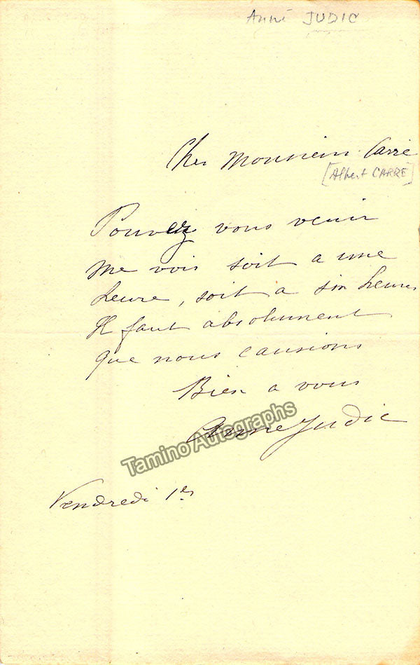 Judic, Anna - Autograph Note Signed