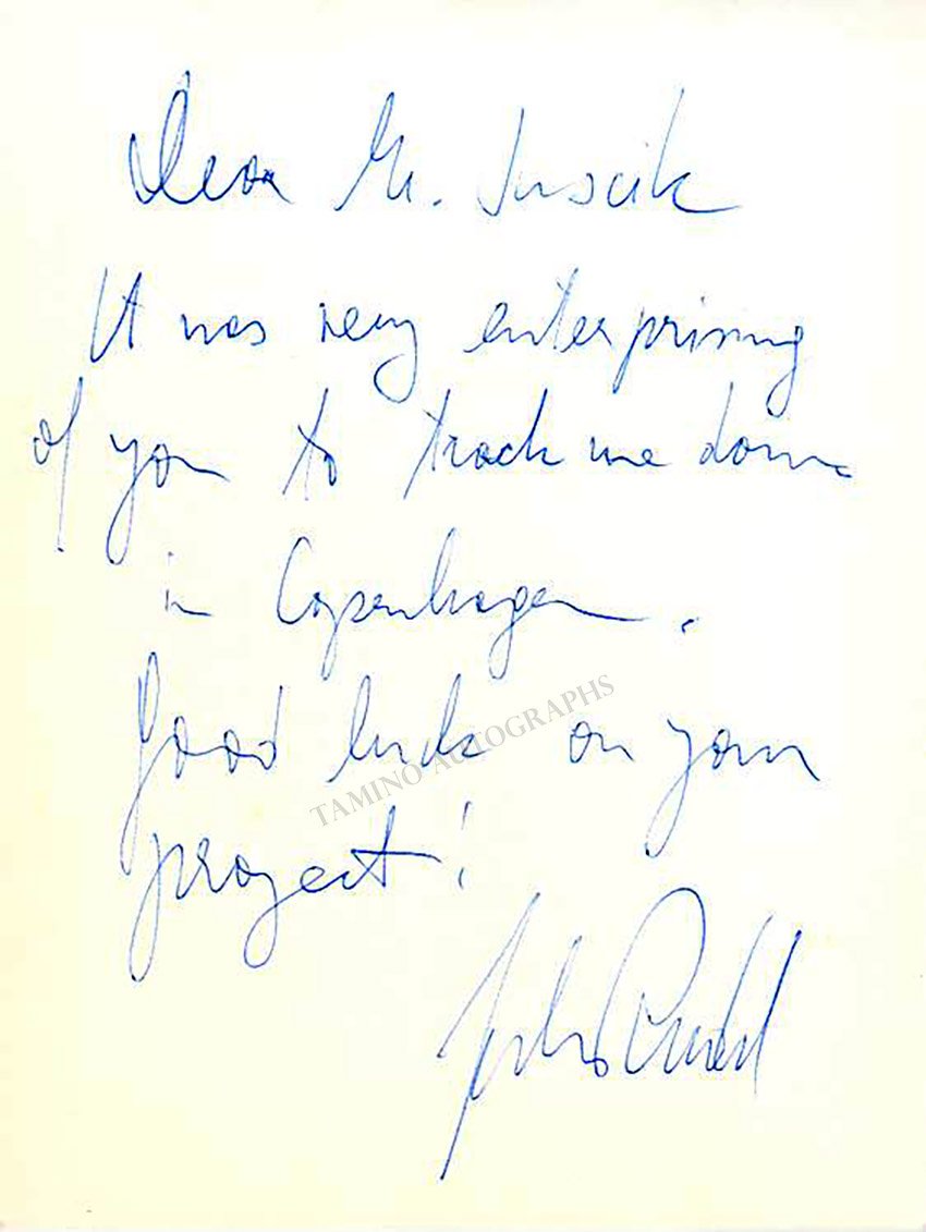 Signed photo, inscribed, also with a short note signed on verso. Size is 3.75 x 5 inches, in excellent condition.