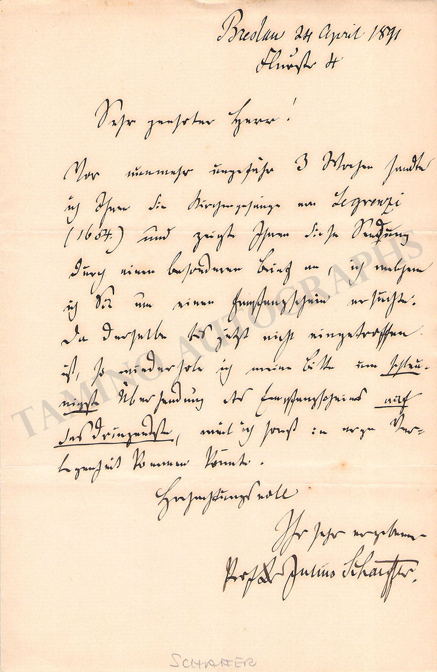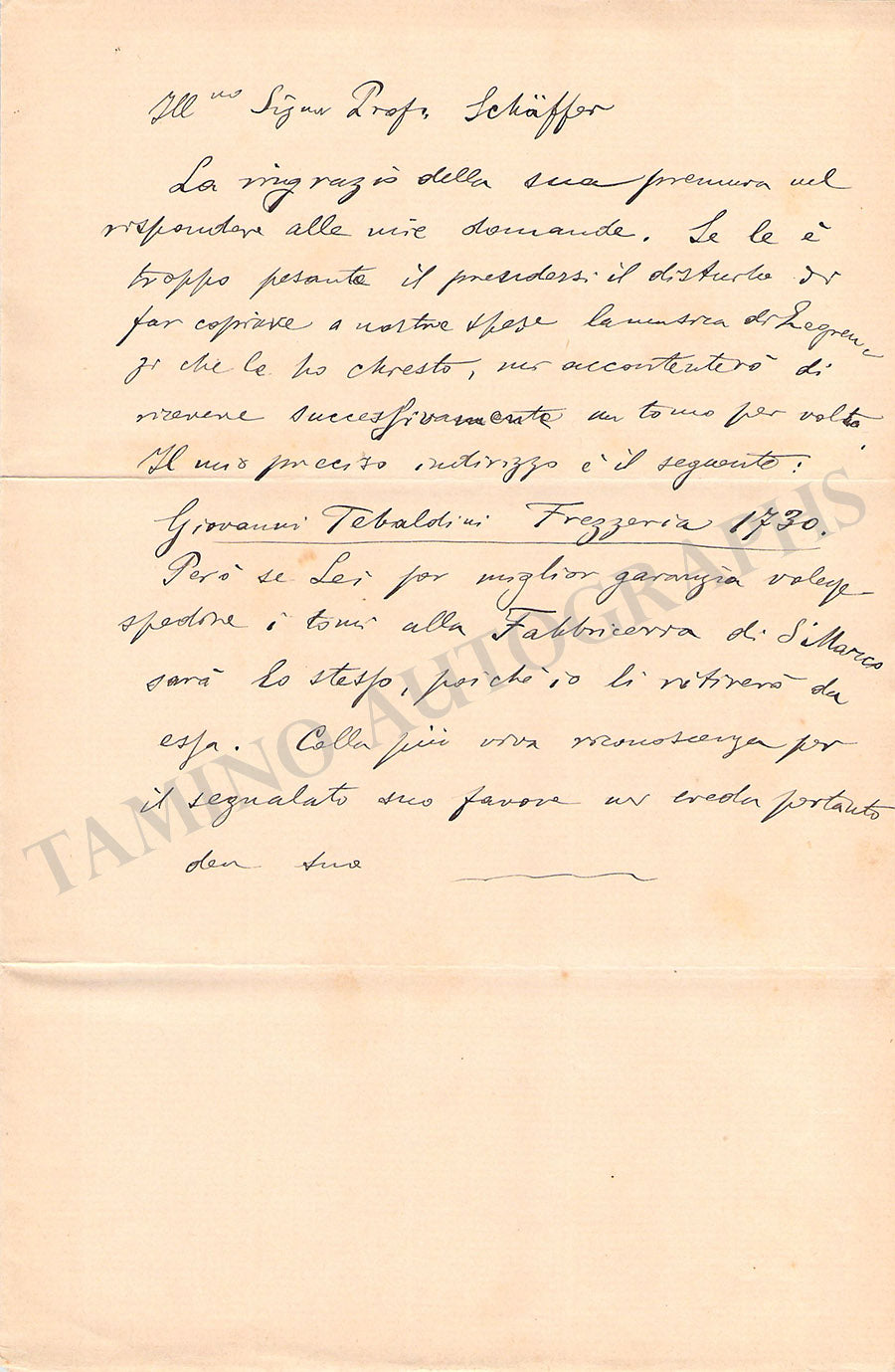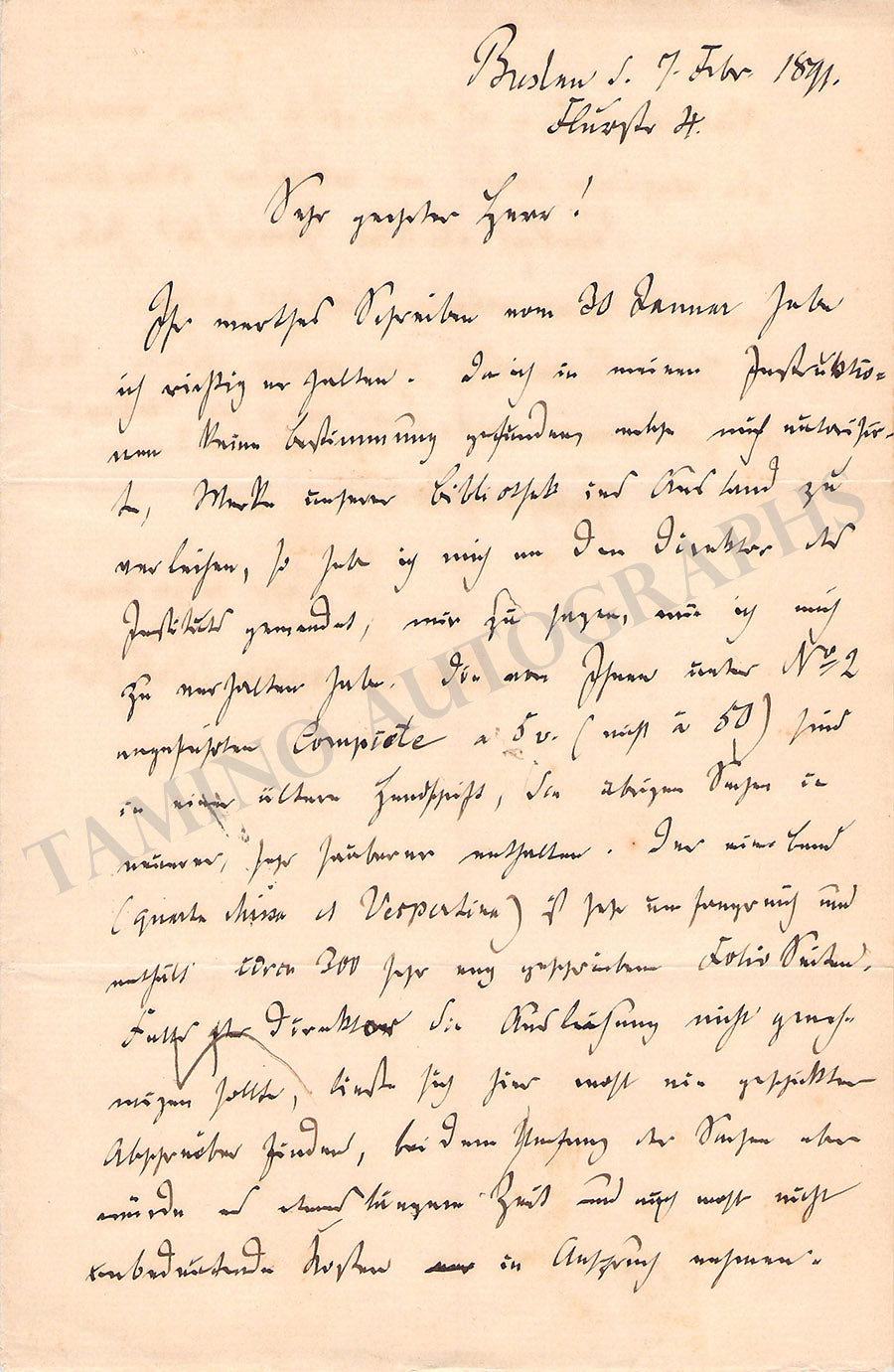 Set of two autograph letters in German signed by him, dated 1891 addressed to Giovanni Tebaldini (with an autograph letter as an answer on the third page), concerning music matters and music literature.