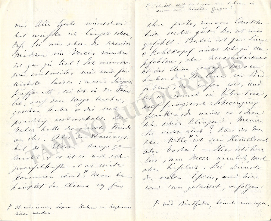 Nice autograph letter in German (sold untranslated) signed by him, dated in Ostende, 1877.  Four pages (in one sheet), each page's size is 4.9 x 8 inches, central fold, in excellent condition.
