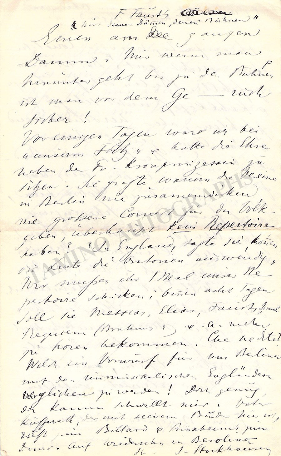 Stockhausen, Julius - Autograph Letter Signed 1877