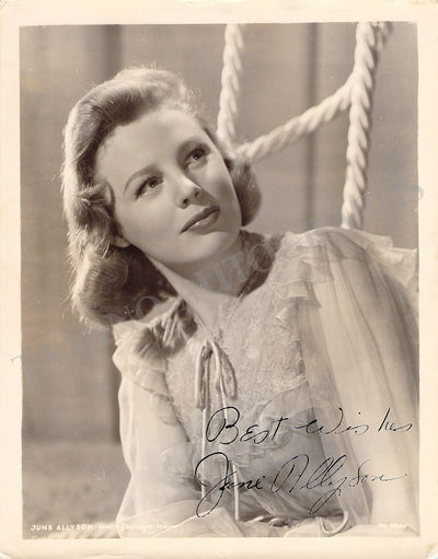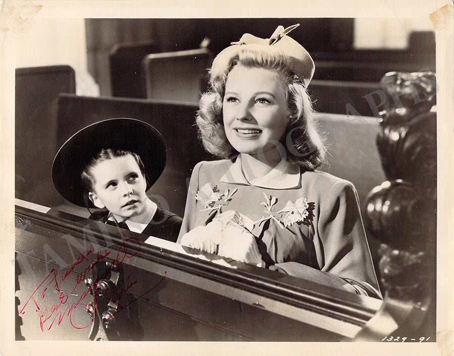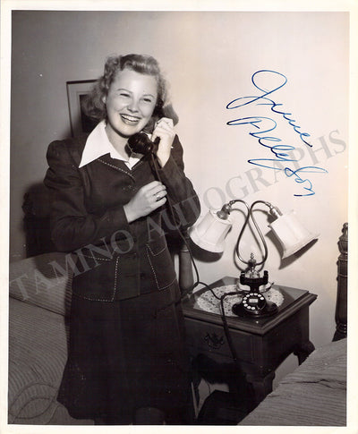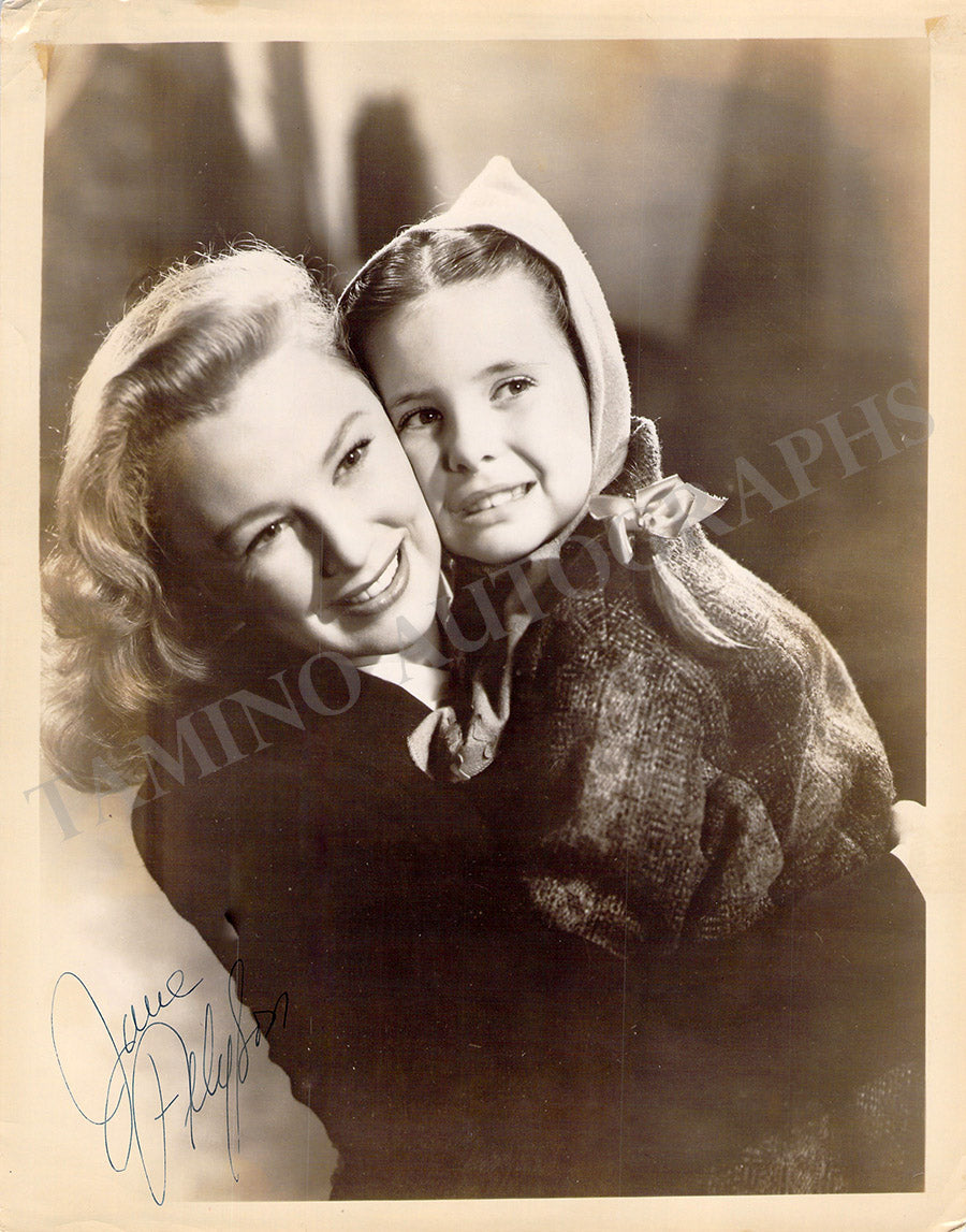 Set x 2 black-and-white photographs signed by her, shown in the film 'Music for Millions'. Size is 10 x 8 inches, minor creases, in very good condition.