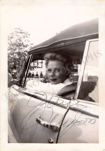 Beautiful casual black-and-white photograph signed by her. Size is 3.4 x 5 inches, in excellent condition.