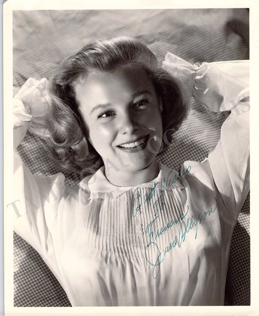 Fine black-and-white photograph signed and inscribed by her with a short sentiment, shown in a film. Size is 8 x 10 inches, minor creases in all four corners, in very good condition.