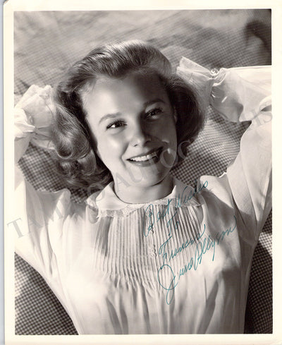 Black-and-white photograph signed by her, shown young. Size is 7.9 x 9.9 inches, in excellent condition.