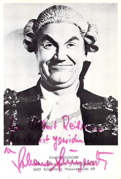 Signed photograph, shown as Baron Ochs in Richard Strauss's Der Rosenkavalier, inscribed. Size is 4.25 x 6 inches, in excellent condition.