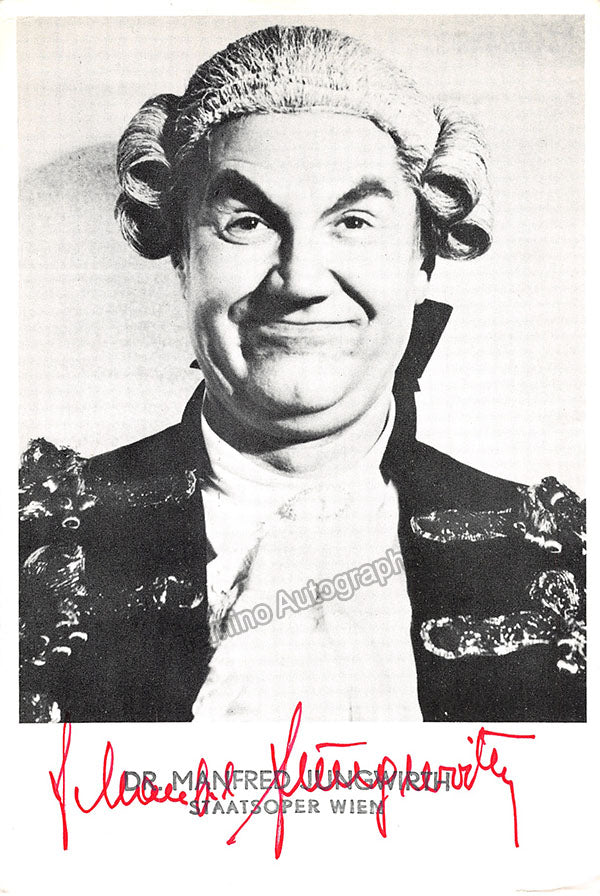 Fine black-and-white promo photograph signed by him on the front with a short sentiment on the verso (not shown), shown as Baron Ochs in Strauss' opera Der Rosenkavalier at Vienna State Opera, 1977. Size is 4.1 x 6.1 inches, ink writing on verso, in excellent condition.