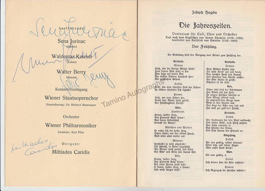 Jurinac, Sena - Kmentt, Waldemar - Berry, Walter, Caridis, Miltiades - Signed Program The Creation 1959