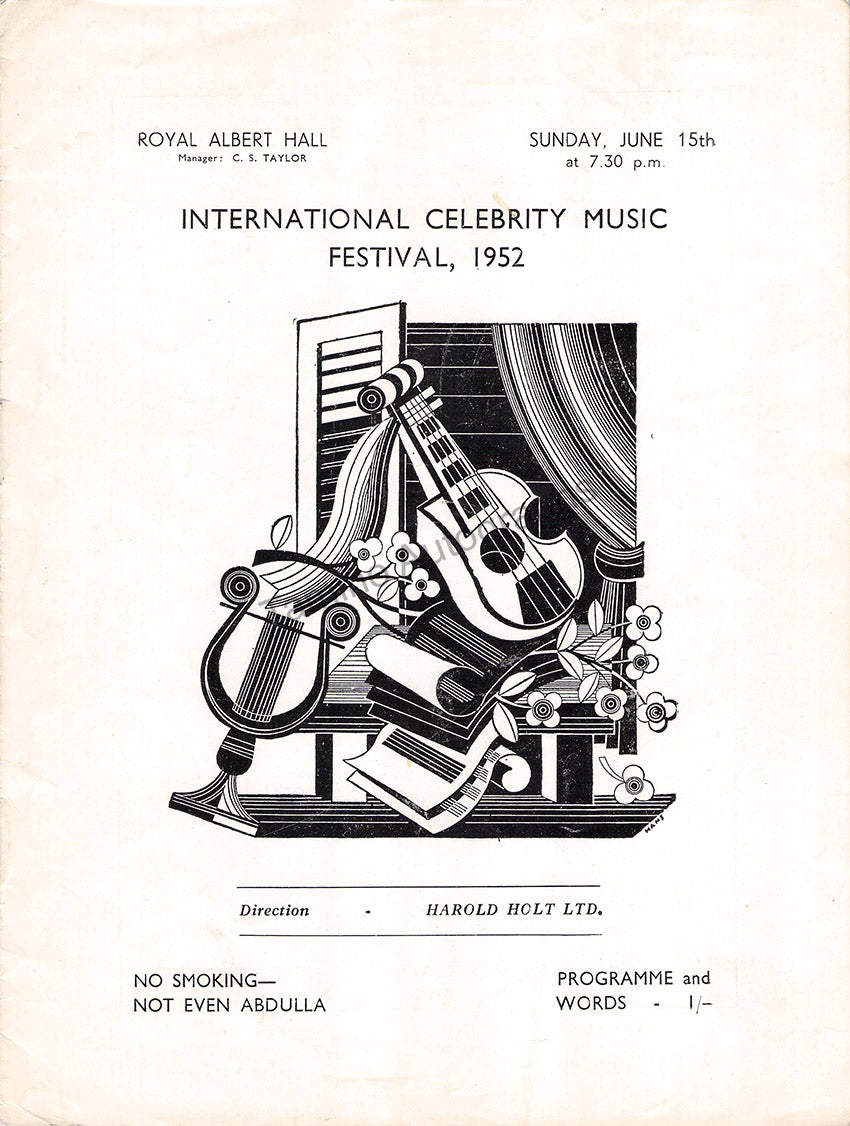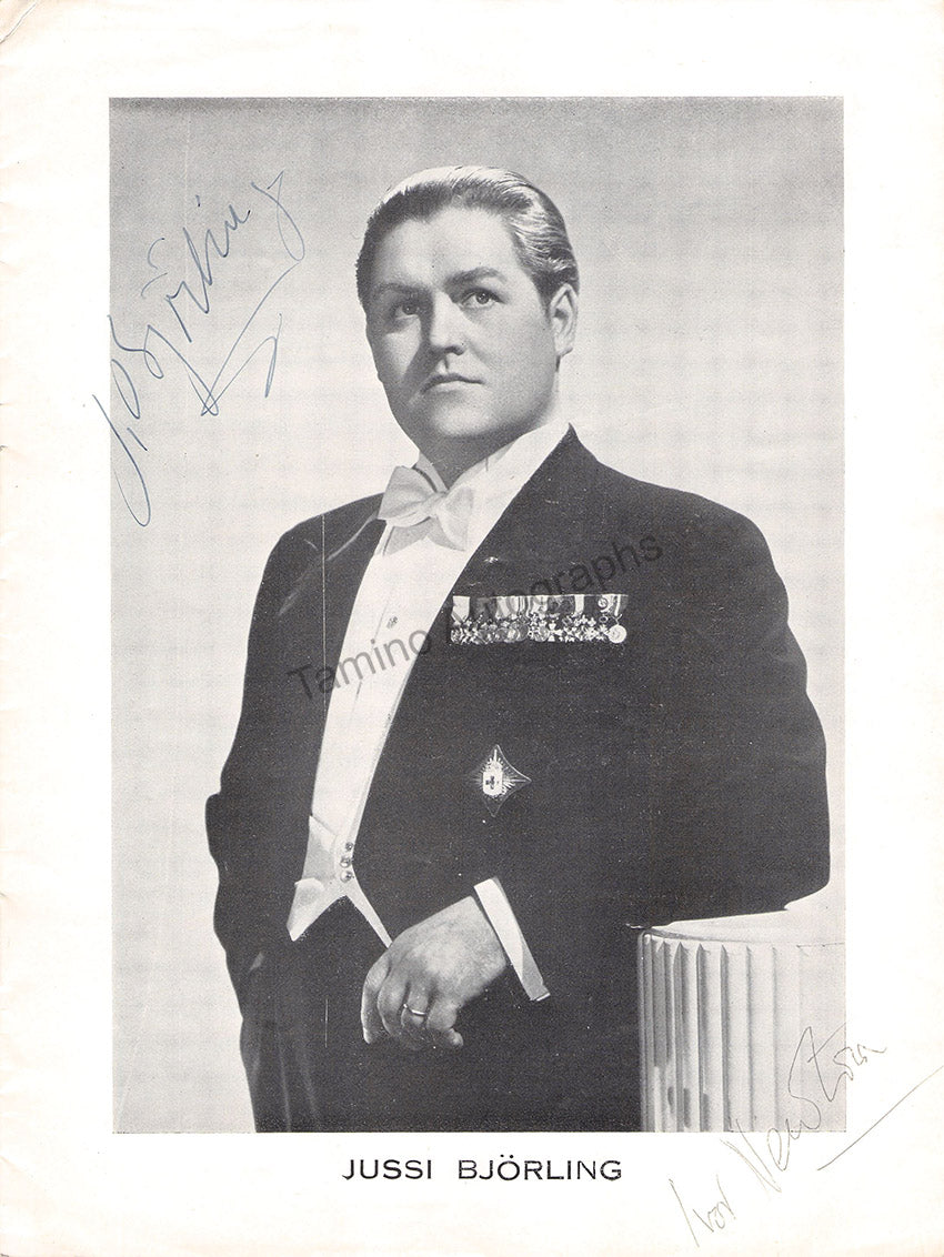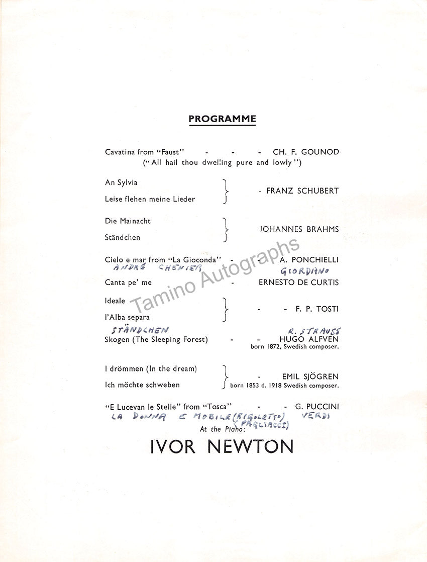 Program for a recital of the star Swedish tenor with pianist Ivor Newton at the Royal Albert Hall, London, June 15th, 1952, signed by both artists on the first page full photograph of the tenor.