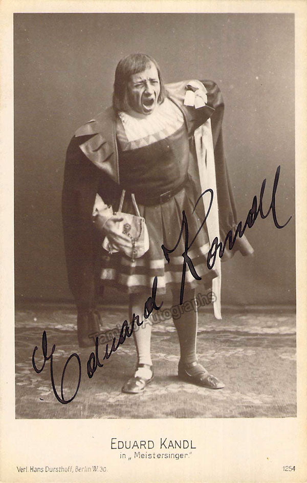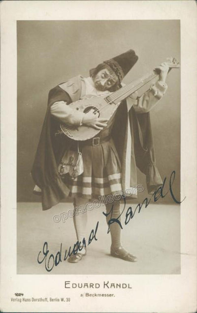 Signed photo postcard, shown as Beckmesser in Wagner's Die Meistersinger. Photo by Hans Dursthoff, Berlin. Size is 3.25 x 5.25 inches, in excellent condition.