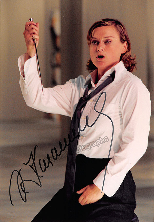 Signed photograph, shown as herself. Photo by Carol Weinberg, BMG Classics record label. Size is 4 x 5.75 inches, in excellent condition.