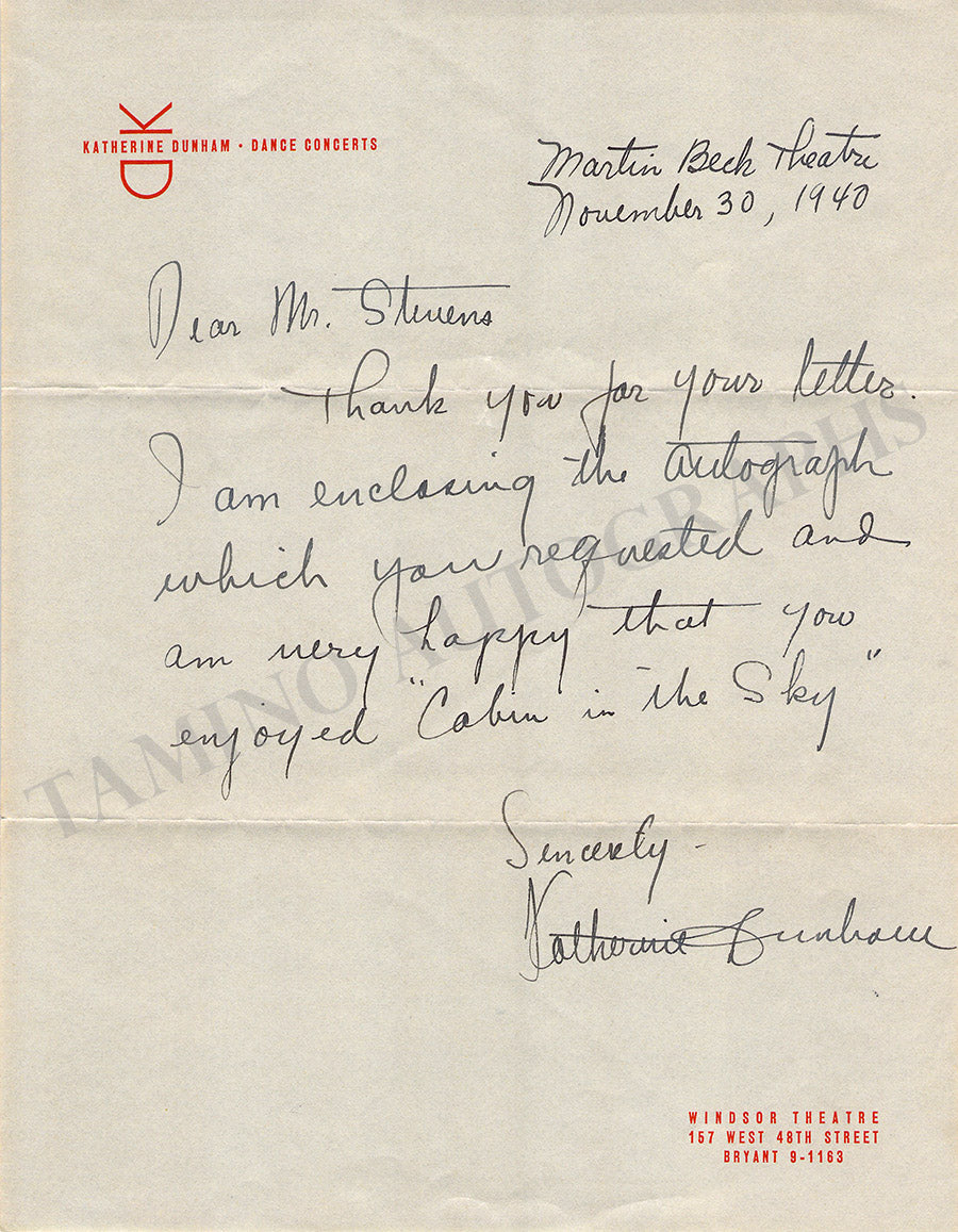Dunham, Katherine - Various Autographs