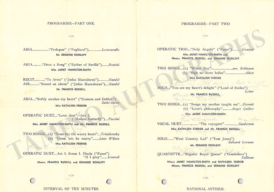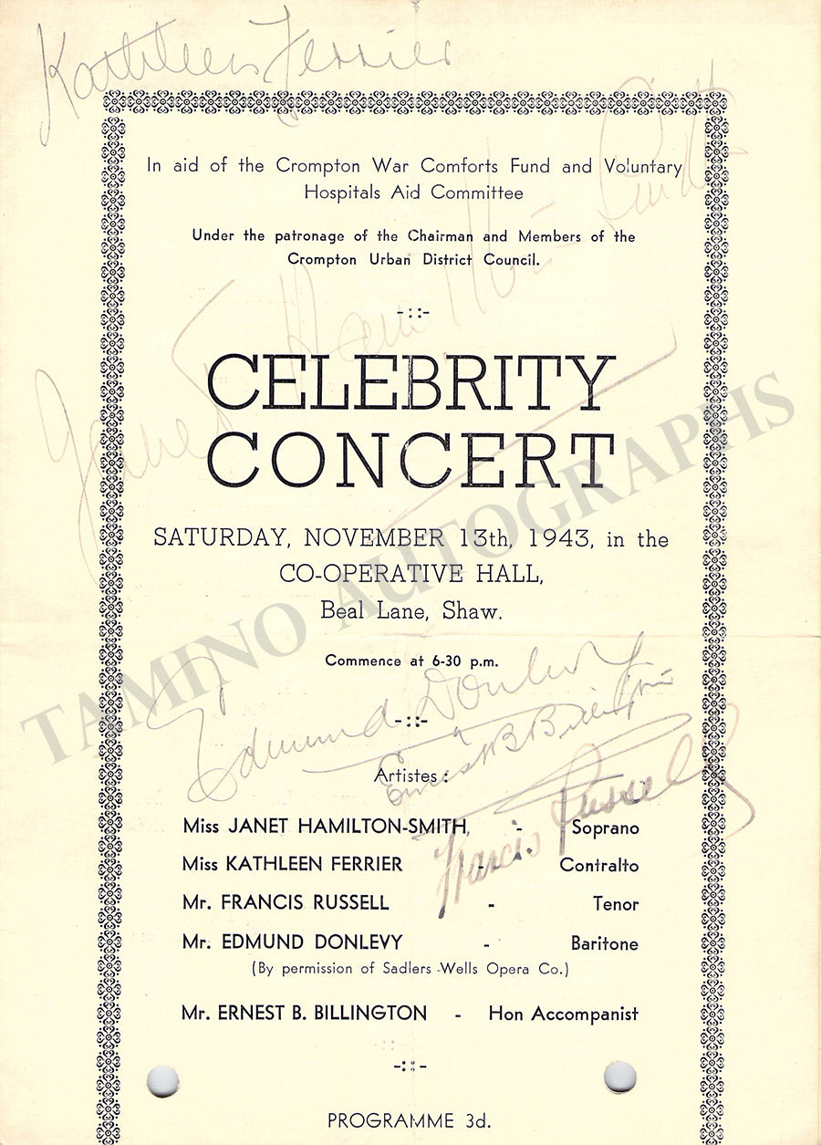 Ferrier, Kathleen - Signed Program London 1943 Ferrier, Kathleen - Signed Program London 1943