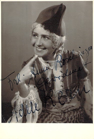 Signed photo postcard of the German soprano (1901-1980) shown in role. Inscribed. Size 4 x 5.75 inches.