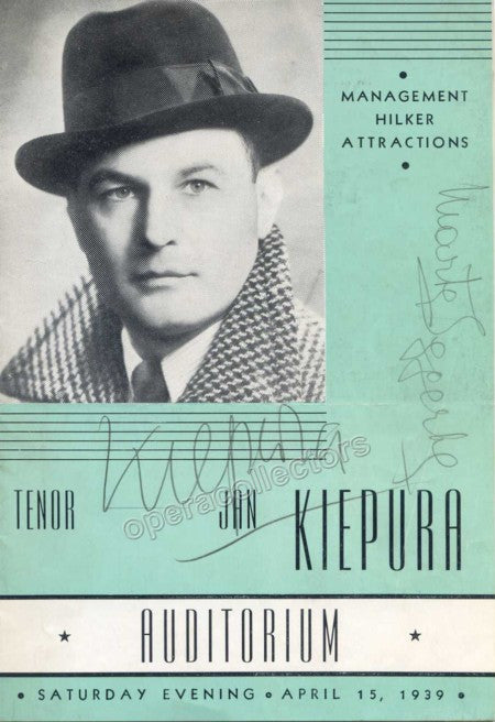 Program for a concert  on April 15th, 1939, signed by Jan Kiepura and Marta Eggert. Size is 6 x 8.75 inches.