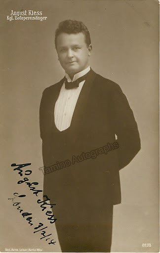 Signed photo postcard of the German baritone (1874-1935), dated in 1914. Size 3.25 x 5.25 inches.